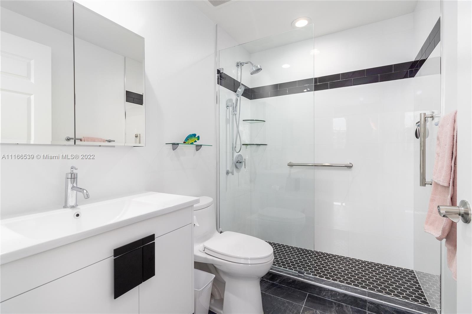 Recently finished complete renovation. This split 2 bdrm w/2 full bath has 10 ft ceilings. All Kitchen appliances are Bosch the electric range, dishwasher, microwave/convection oven, quartz countertop & tile backsplash. Pantry & Laundry room w/ full-size LG washer/dryer. Seamless tile floors 48 X 24. Both baths have been updated w/ all new tile, vanities, medicine cabinets, lighting, glass shower doors, Kohler showerheads. The Master bath has an extra-large sink & a seat in the shower. Custom closets throughout. The Master bedroom has its own balcony entry. All rooms look beyond the golf course towards the ocean & sunrises. A fully equipped gym overlooks the pool. Covered, above-ground parking. 24 hr security, concierge & valet service. Easy access to beaches, shops, I95 & FTL Airport.