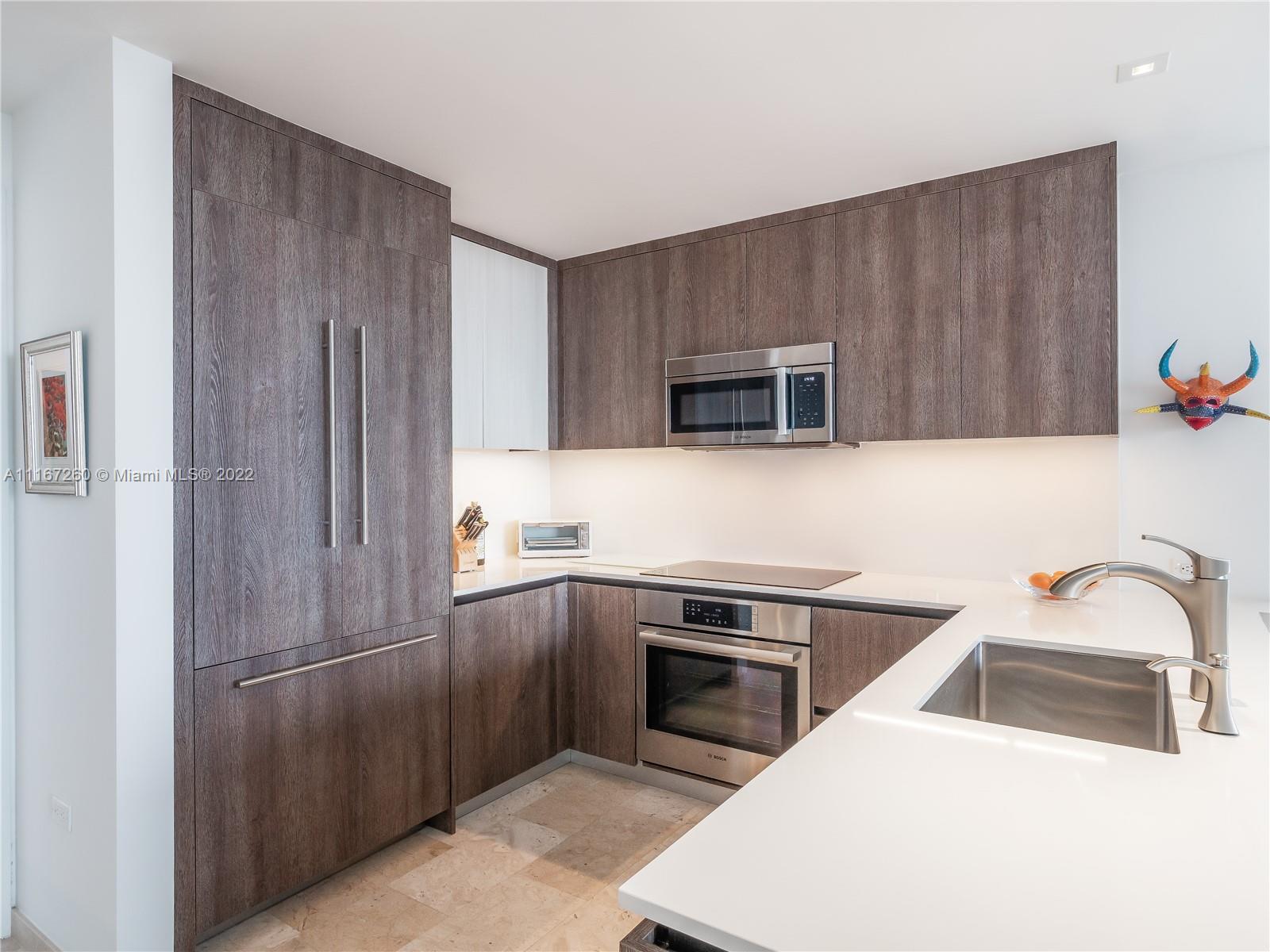 This unit is fully upgraded to give it a more practical and warmer feel. Bar / Wine Cooler station removed from the kitchen to its own stand-alone space using materials from developer with 4 extra cabinets for storage. Kitchen has upgraded cabinets. This Unit features 2 bedrooms with full walk-in closets and in suite bathrooms. The master bathroom features his/hers sinks, shower with custom shelving installed, brand new anti-fog mirrors, roll out shelves in the walk in closet, and remote controlled black out shades. The 2nd bedroom is currently used as an office with space enough for a queen-sized bed and extra linen closets in the bathroom - also equipped with remote controlled black out shades. The living room has automated / remote controlled shades and extra custom lighting throughout.
