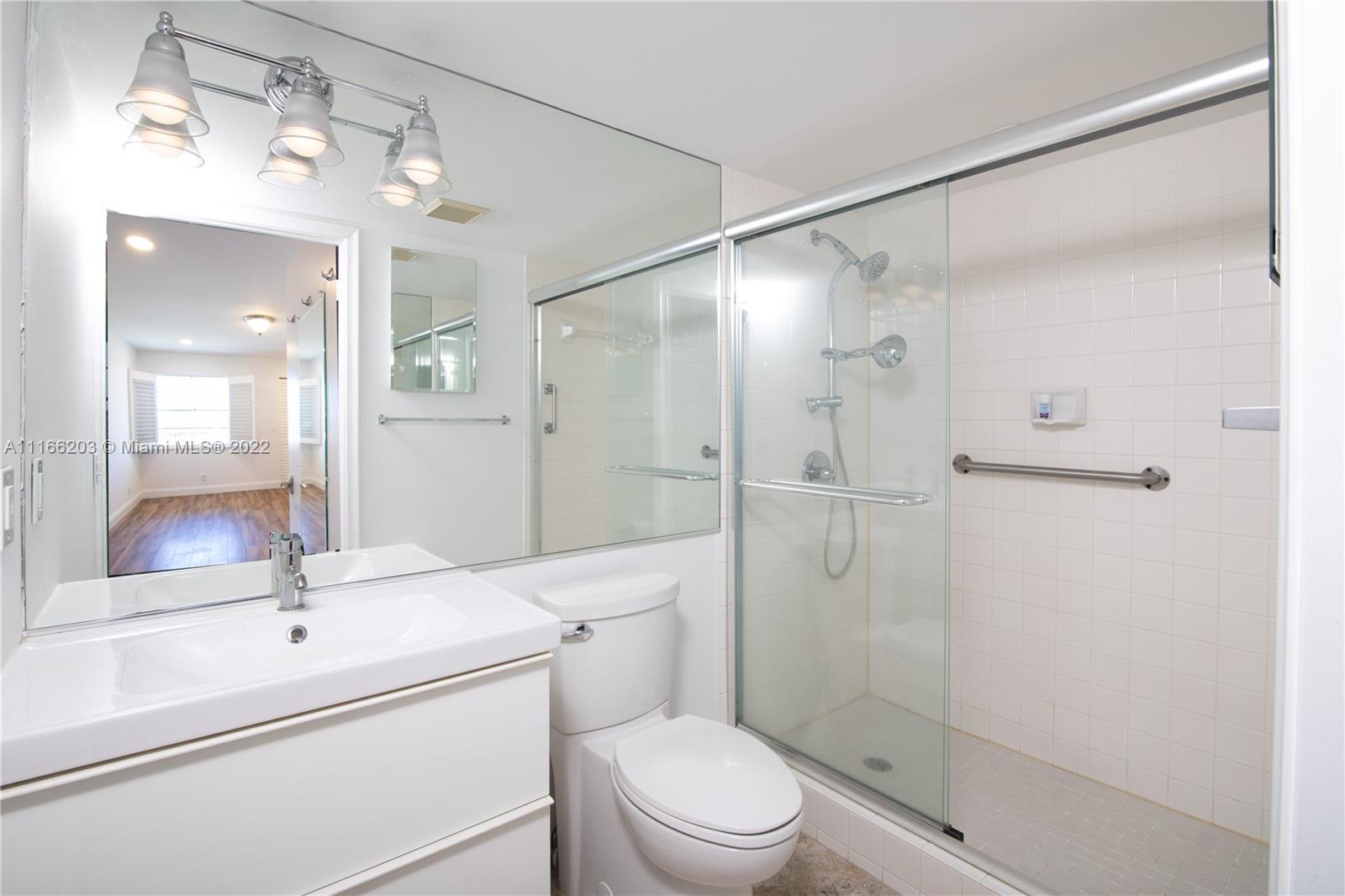 A fantastic 2-bedroom /2-bathroom condo in Century Village - 55+ community that has a panoramic Lake view from a very spacious Balcony. Remodeled kitchen and bathroom. Tastefully designed spotlights with different colors in the kitchen, beside the granite countertop and new cabinets. Windows have nice plantation shutters. Laminated wood floor throughout main area and tile floor in Kitchen and Bathrooms. There is a laundry room facility in the same floor/building. Amenities include indoor & outside swimming pools, tennis courts, theater, golf field, Club House, conference rooms, transportation and many other activities. HOA include Water, sewer, Wifi, Basic cable and garbage.