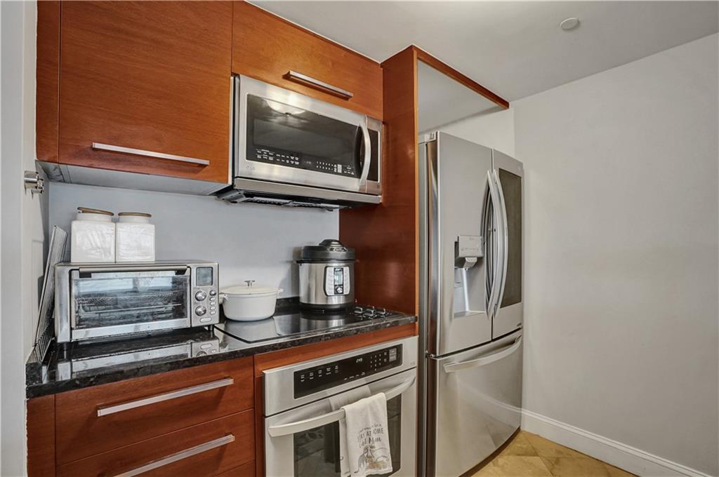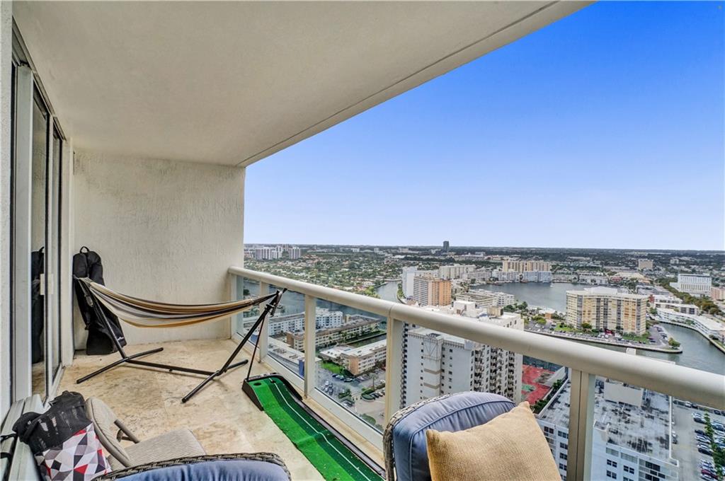Beautiful Intercoastal and city views from the 31st floor. This one bedroom plus den enclosed with french doors, can be used as second bedroom/office. Master bedroom has electronic black out shades. 2020 SS refrigerator with food showcase window, 2020 oven, microwave & dishwasher. A/C 2016. Full size W/D. Full concierge Beach Club Condo, 5 star amenity building featuring ocean facing full service fitness center, his and hers sauna and full service SPA. Complimentary spinning, yoga and more. Access to all three towers, pools and pool side cafe/bar over looking the ocean with complimentary beach service. 2 parking spaces, 1self park and 1 valet.
