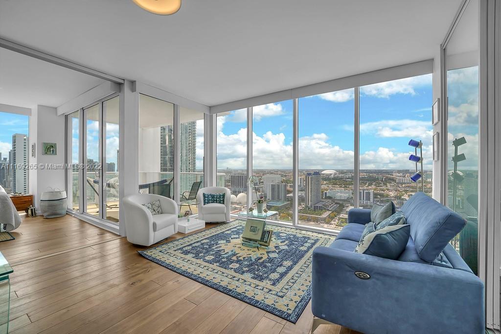 Beautiful 2/2 Unit at the iconic Ten Museum Park! Stunning sky home, bright & spacious with top-to-bottom glass windows, offering spectacular views of city skyline. Open concept kitchen with SS appliances, 360 glass encased shower, custom closets with glass doors, floating glass wall splitting the bedroom, includes cable TV, water, two valet parking spaces and a storage locker. Condo offers an array of amenities that includes guest valet parking, front desk attendant, a full size gym, yoga classes for residents, World class spa with steam and massage rooms. Pool deck that spans East to West offering sun all day, while overlooking the Port area and Downtown Miami. Walk to Museum Park and Frost Museum. Close to public transportation, I-95 & 836, only 10 min drive to South Beach!