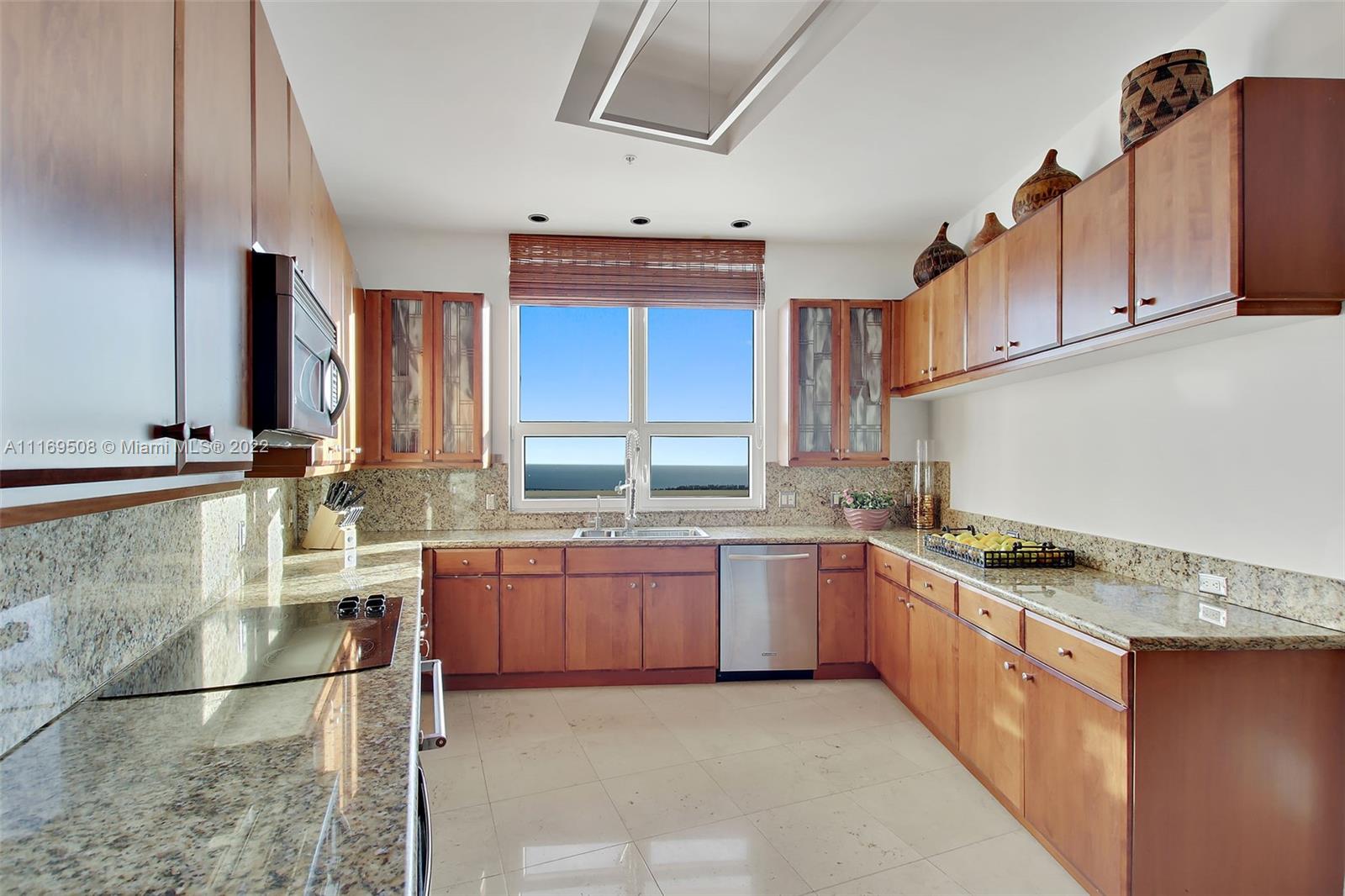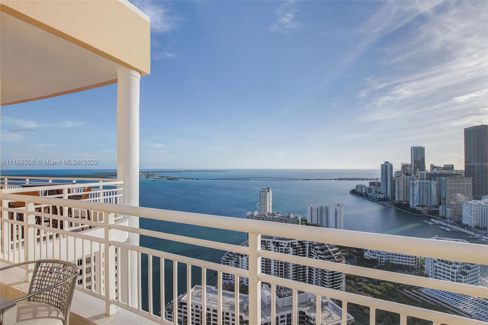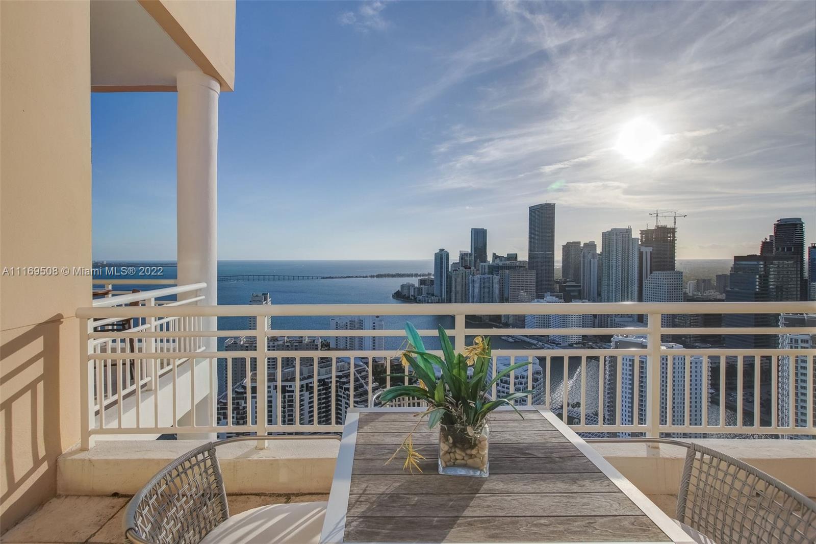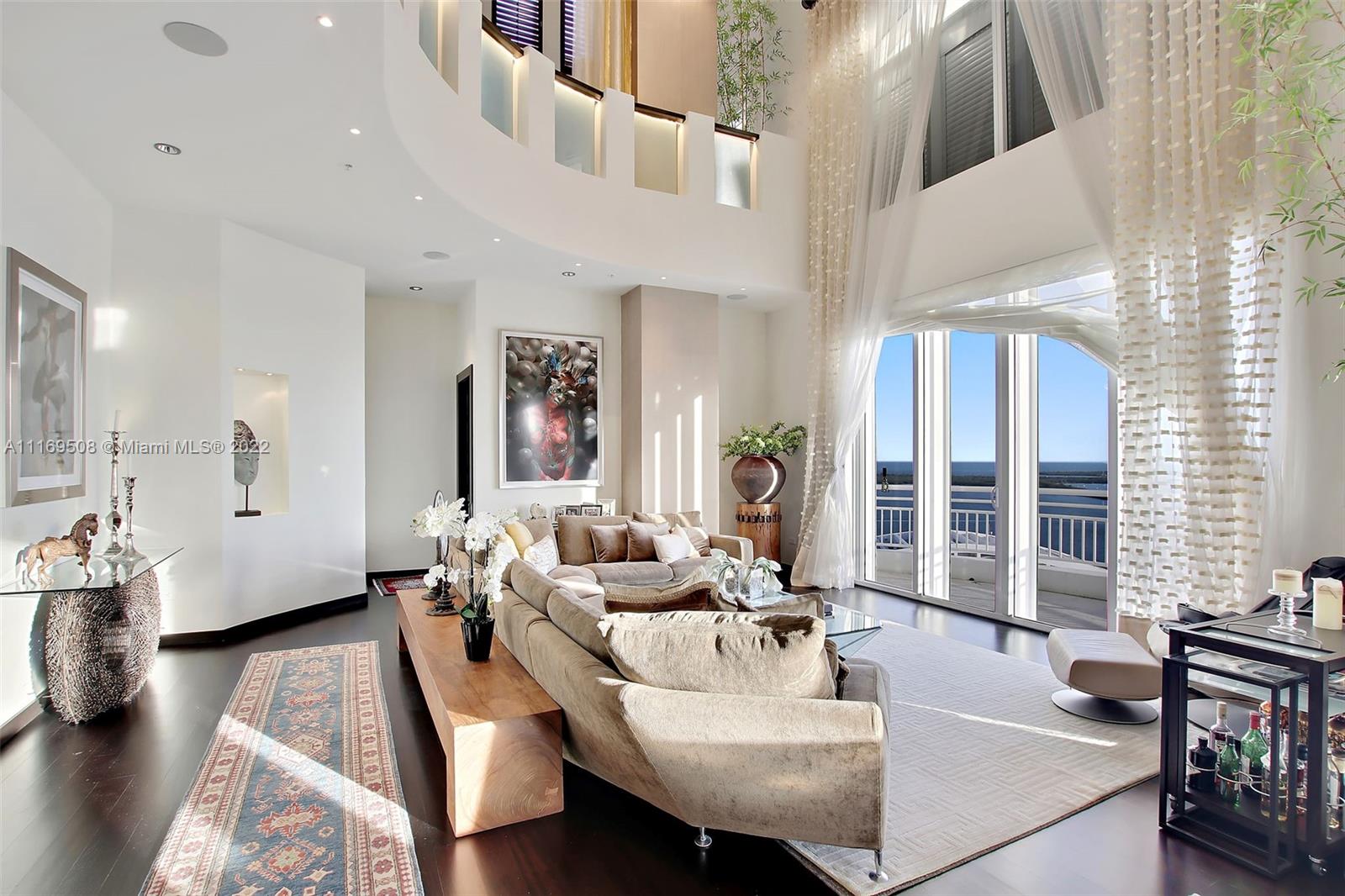 One of a kind offering. Absolutely the best on Brickell Key! This Penthouse is all about breathtaking, unobstructed water and skyline views, stunningly high 40ft ceilings. This unique property features 3 beds/3.5 baths plus office. All wood floors in bedrooms, marble in baths/kitchen. Closed private garage within the parking area with room for more than two cars, extra storage. A true gem! Among the building's amenities you will find pool, 2 level fitness center, BBQ area, tennis court & racquetball court, valet, concierge & much more. Best location within the sought after island of Brickell Key, minutes to the best shopping, dining Miami has to offer while in the quiet Brickell Key