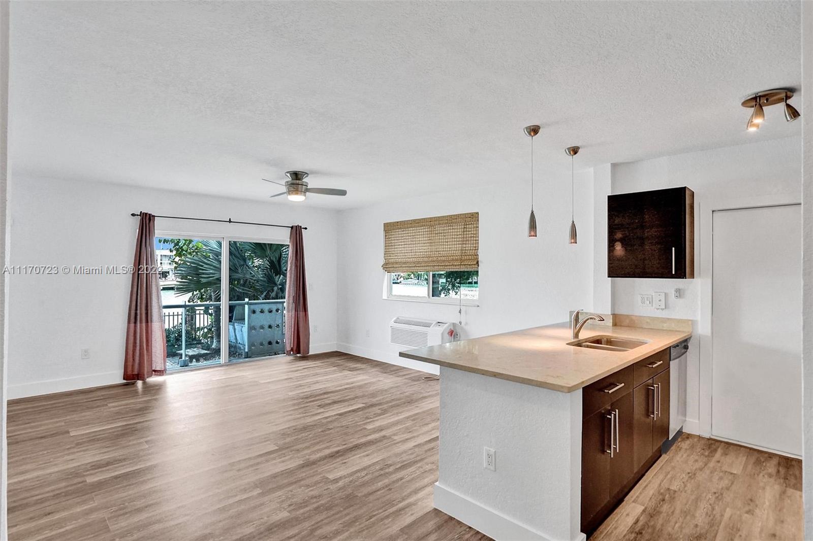 Tropical inter-coastal views from this elegantly remodeled, 2/2 condo in Normandy Isles. Enjoy the sunrise or standup paddle boarding right on Biscayne Bay. Bring your clothes and toothbrush, cause this condo is completely remodeled and ready for move-in. Featuring newly installed grey waterproof wood vinyl floors with squared baseboards, high-impact resistant windows and doors, granite counters in the kitchen and baths and travertine floors and showers in the bathrooms, new custom closets and freshly painted. The building is being updated in the hallways and will be painted in the exterior, with No special assessments! Moments to the beach, JFK Cause Way and I-95. Dock rental by separate owner 20' max. Hurry the last unit lasted a couple days. Call today for your private showing.