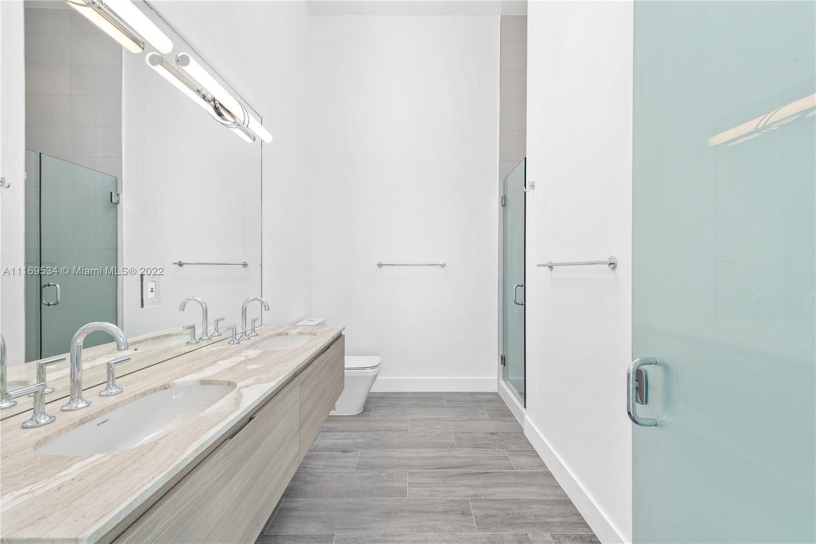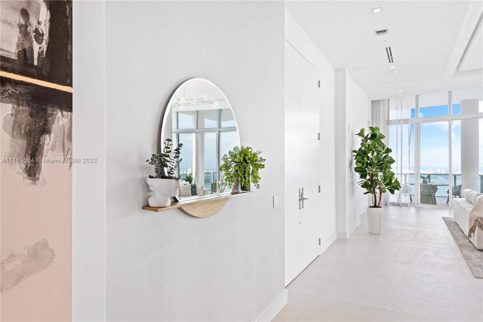 Enter this one-of-a-kind lower penthouse and be prepared to be awestruck. Enjoy wraparound views of Biscayne Bay and Miami Beach from soaring 15-ft floor-to-ceiling windows that welcome natural light throughout the entire penthouse. Special features include 60” x 60” tile, custom ceiling lighting plan, massive master bedroom with in-suite lounge, 4 guest suites + 1 staff room, a west-facing den, outdoor summer kitchen and 4 parking spaces. Located in the heart of all that is trending in Miami within a 5-10 minute drive to Design District, Wynwood, Downtown, Brickell and South Beach.