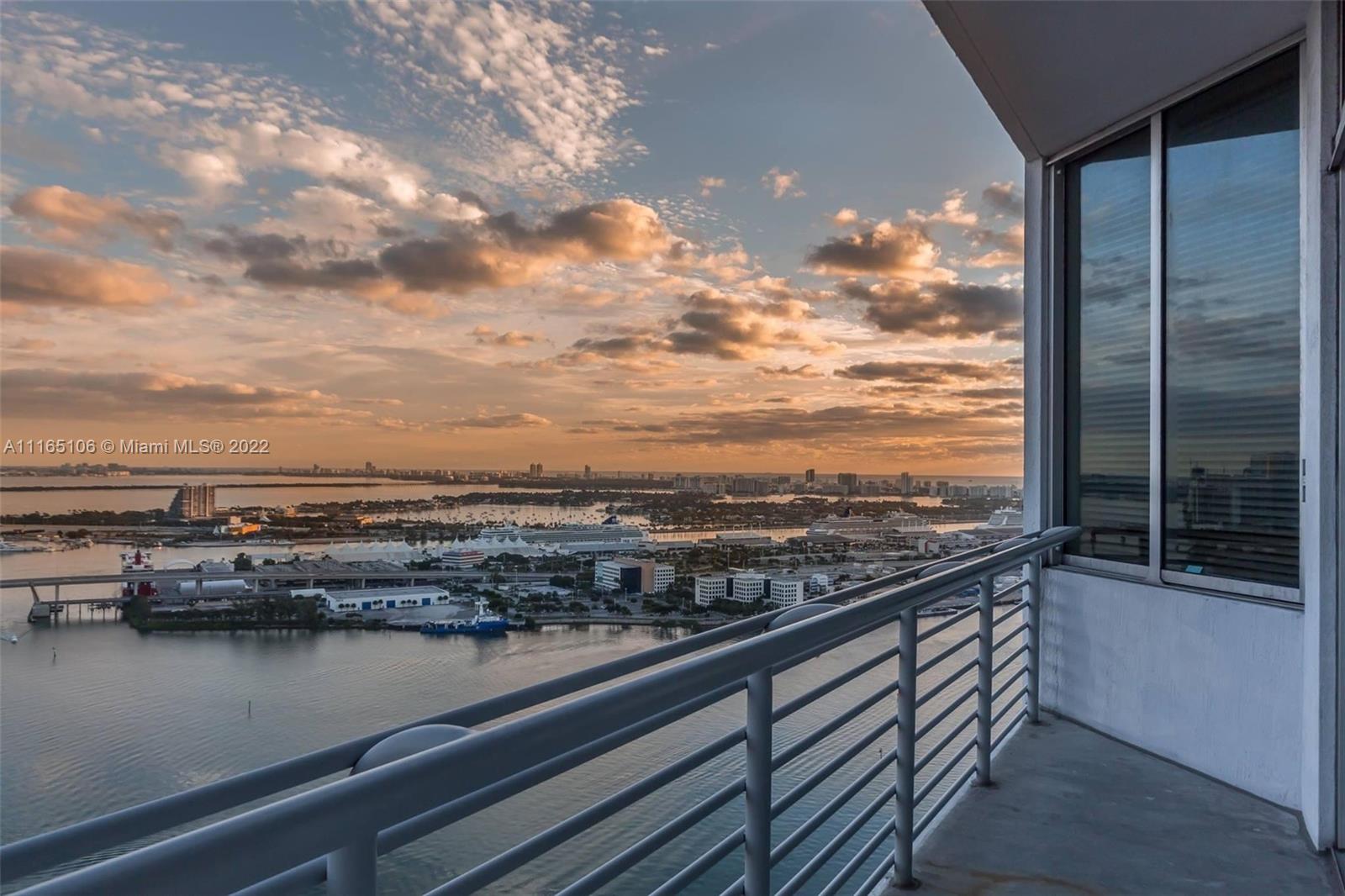 Stunning UNOBSTRUCTED views of the Biscayne Bay and the Miami skyline that will make all of your friends jealous! 43rd-floor PENTHOUSE living at its finest! 2bd/2ba. 2 PARKING SPACES on 3rd floor! Unit features 12ft high ceilings, new modern wood-look tile flooring, split floor plan, separated dining area, LG washer and dryer, and 2 walk-in closets. Premium cable (175 channels) + internet included in HOA fee. The building has the best location in Miami being right at the borderline of Brickell and Downtown Miami. Building is located walking distance to Whole Foods, bayfront park, Bayside, Metromover, Brickell, FTX arena, and I-95 entrance! Building amenities include 2 pools, sun deck, 2 gyms, party room and more! Unit is vacant and ready for occupancy! WILL NOT LAST! EASY TO SHOW!