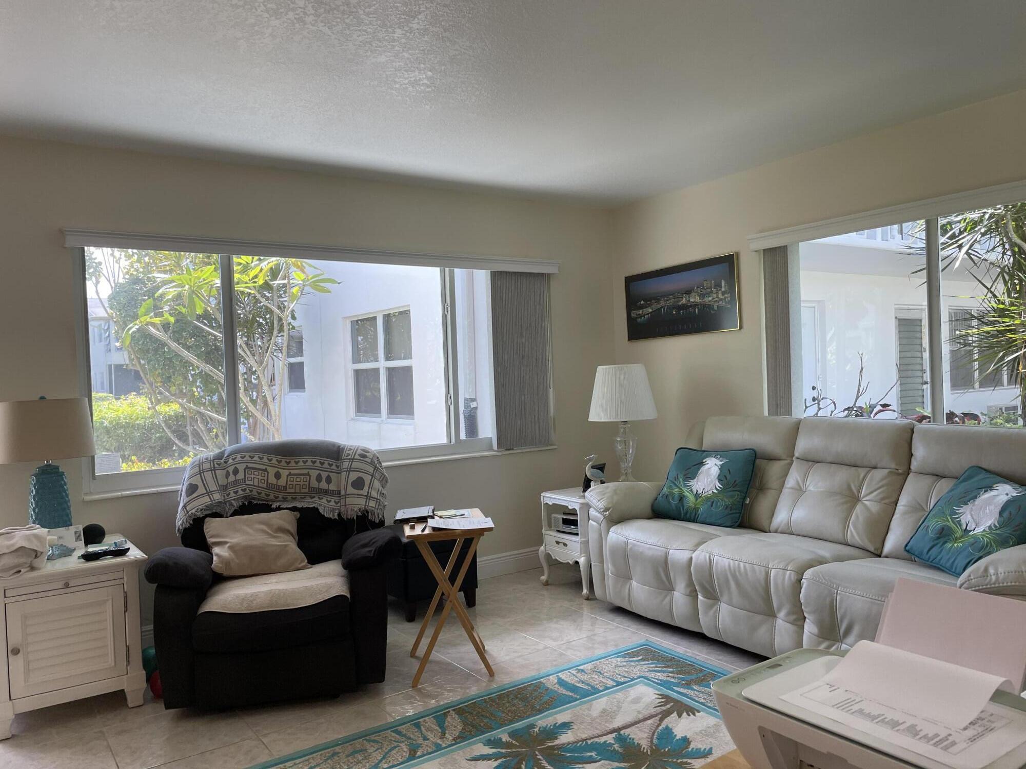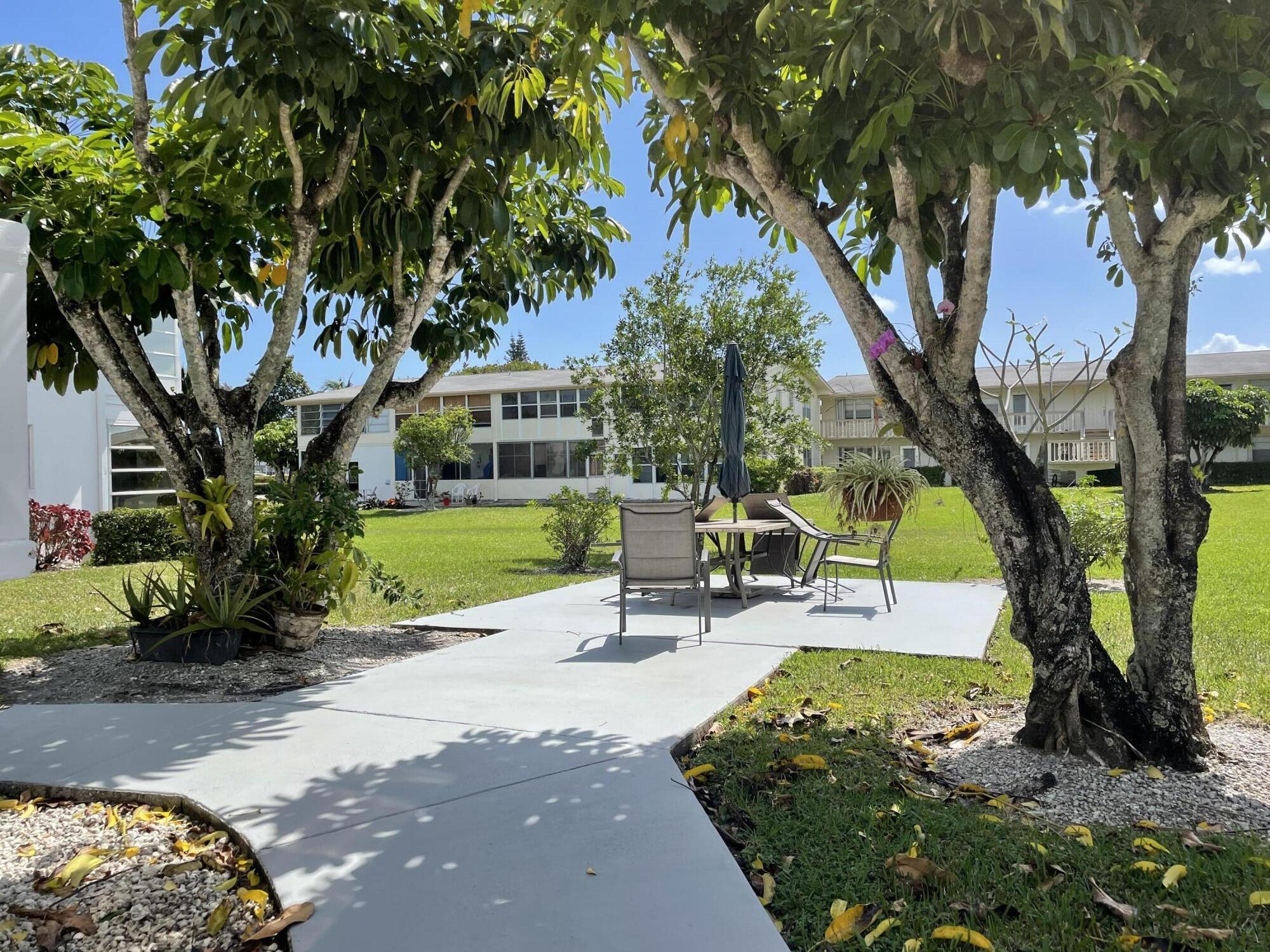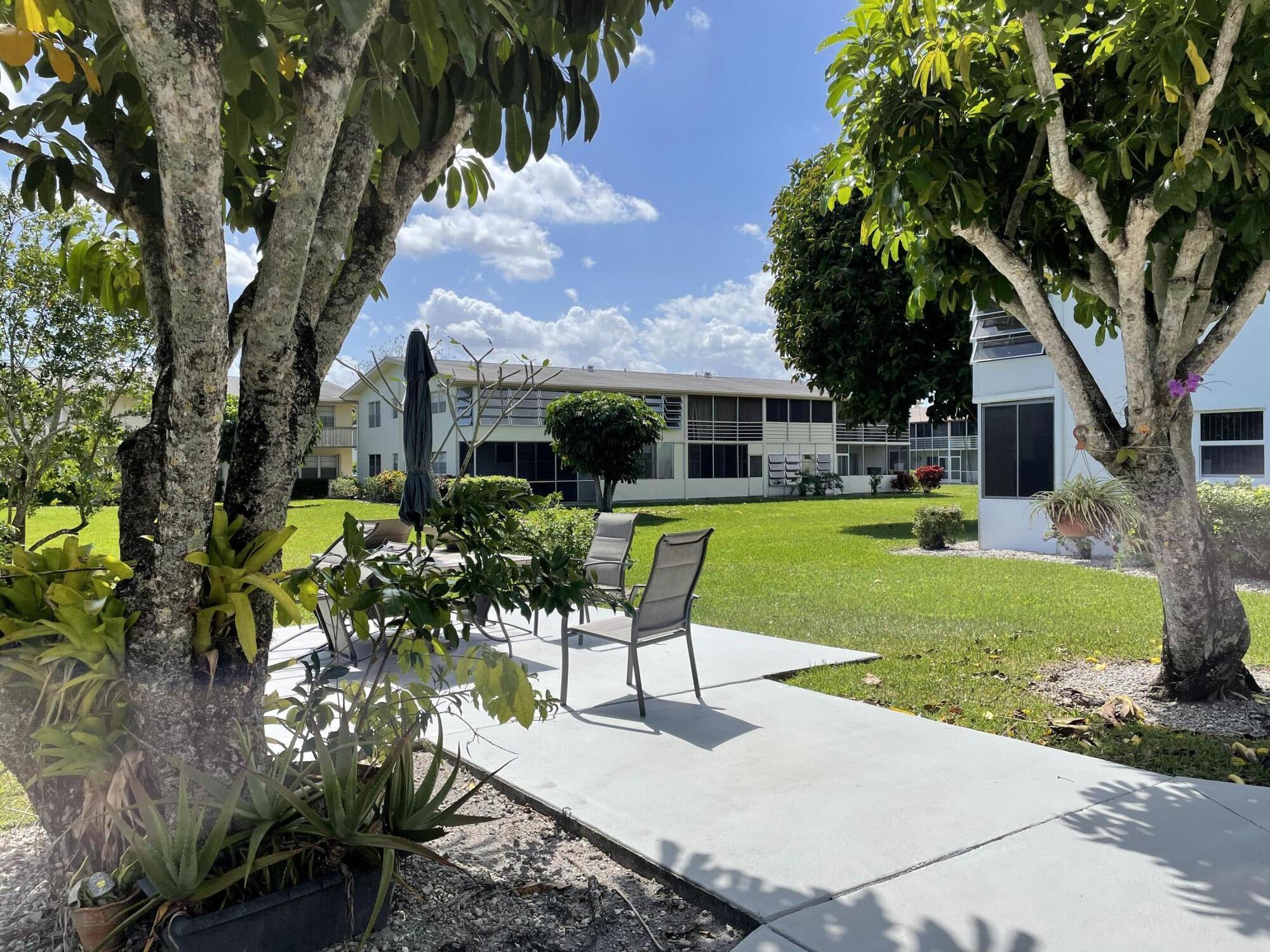 Sunshine abounds in this 1st floor corner unit! This lovely, 1 bedroom, 1.5 bath unit for sale in a 55 + adult retirement community in Century Village overlooks a lovely patio with lush foliage. You will enjoy the South Florida lifestyle with amenities such as a fully equipped fitness center, club house with over 1000 seat theater, free transportation, close proximity to PBI airport, shopping, beaches and many restaurants.