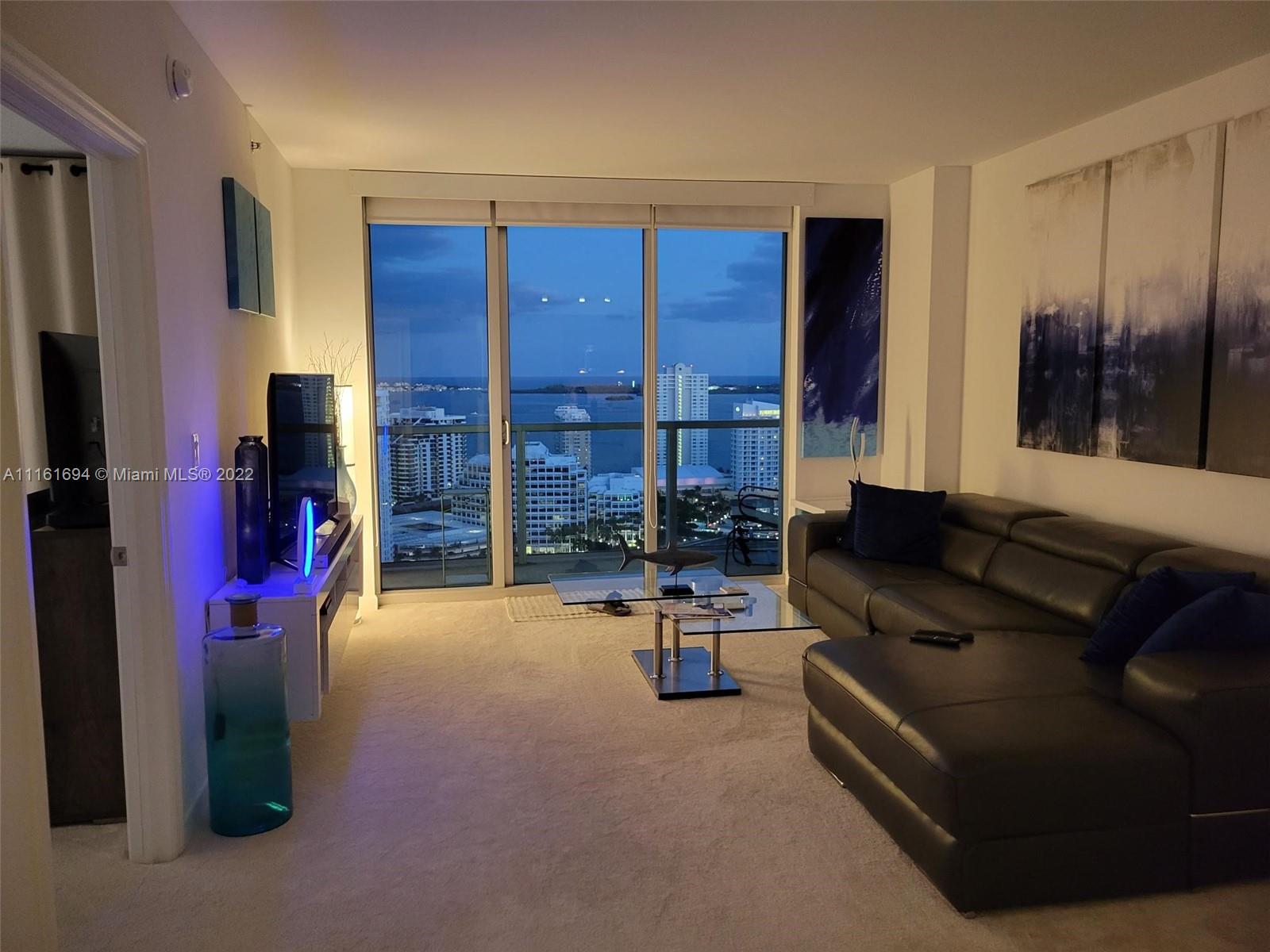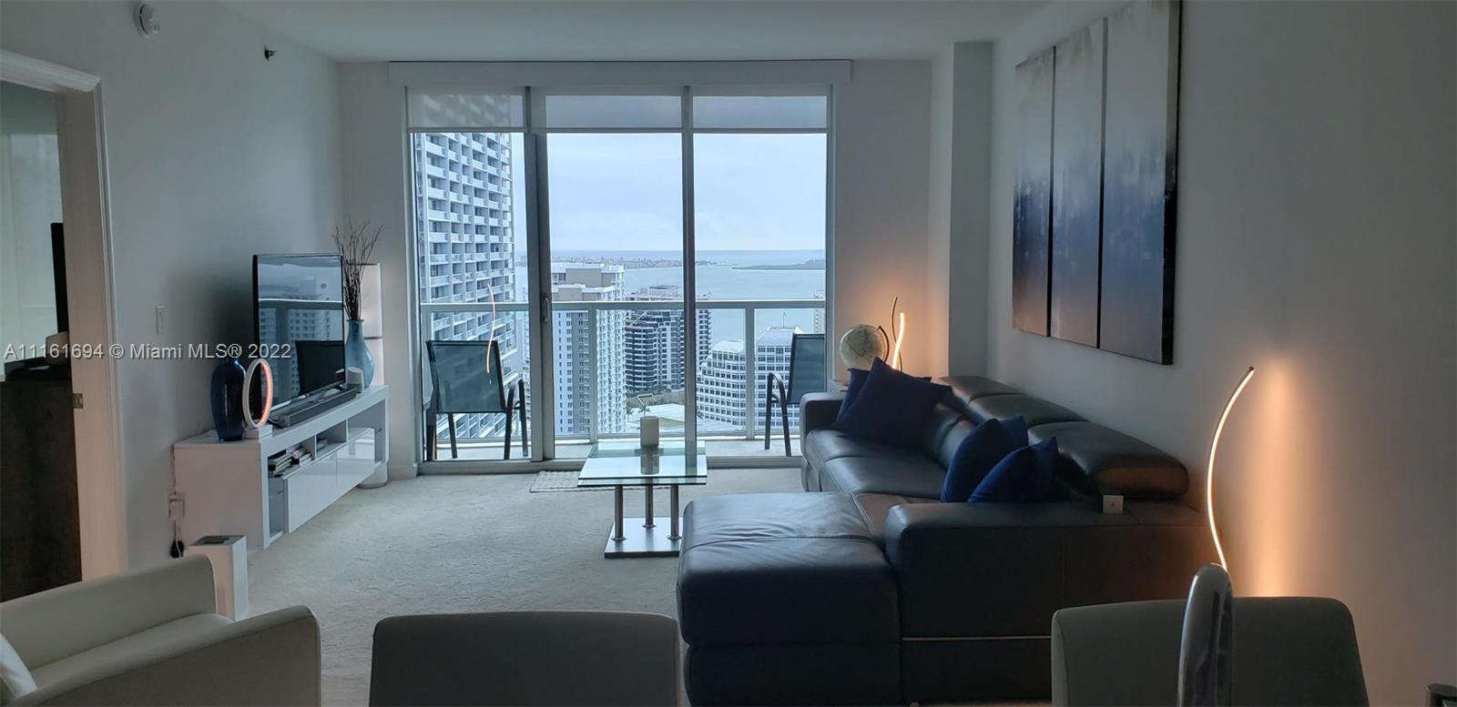 MUST see! Only this line 1 bedroom units face directly East, with awesome views of Biscayne Bay and Atlantic Ocean! Immaculate condition, Shows like a model, Very Modern. Great kitchen featuring solid surface counter tops, stainless steel GE Monogram and Bosch appliances. Marble counter top in large bathroom, with dual sinks. Separate shower and jacuzzi/spa tub. Tile floor in bathroom/kitchen. Premium carpet. Large balcony full length of the unit. Pet friendly. Full amenity building, 2 pools (one rooftop), newly remodeled fitness center, spa with hot tub, sauna, steam room, showers, community room. 1 assigned parking spot. Very Easy walk to all Brickell has to offer, including restaurants, shopping, movie theater, grocery. Available Furnished. Furnishings Negotiable.