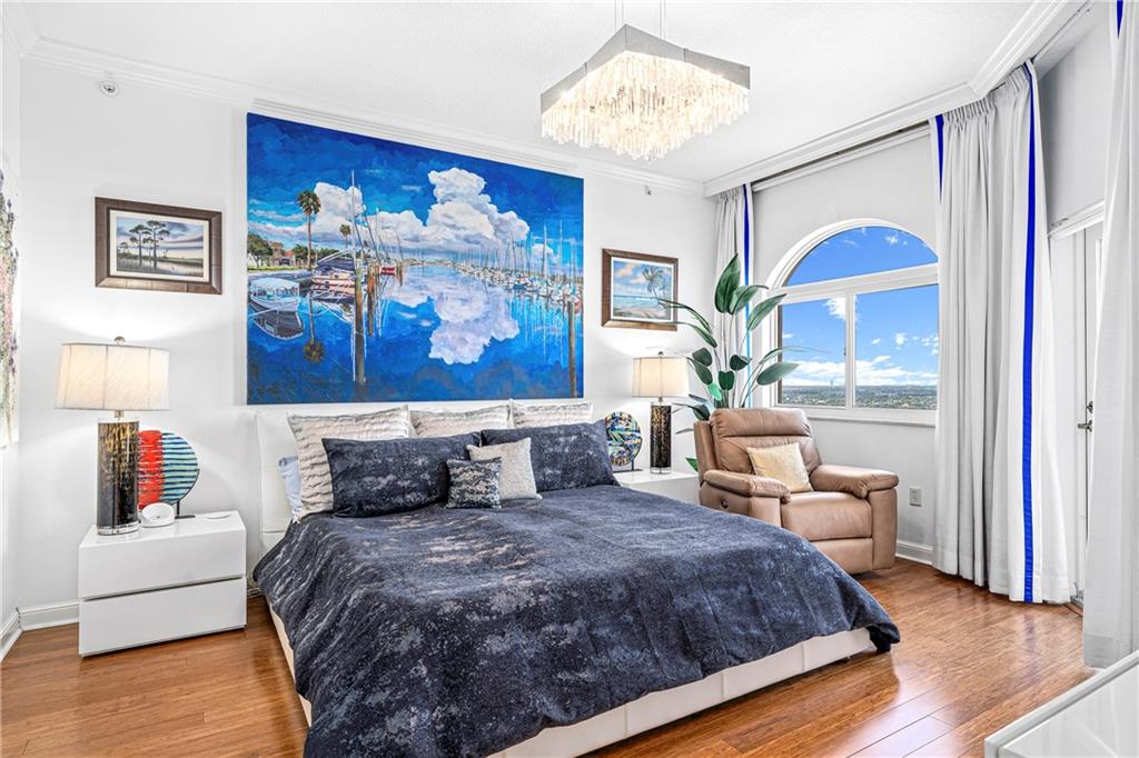 Breathtaking open views in every direction from this highly sought-after SW corner unit, offering sweeping panoramas of the ocean, Intracoastal, and city skyline - with an unbeatable location overlooking the Las Olas Marina and beach and panoramic views of the yachting capital of the world. Private elevator delivers you to an entry foyer and into this meticulously maintained lower penthouse originally designed by the renowned Steven G. The light-filled residence spanning 2,000 square-feet features marble and bamboo flooring throughout and high ceilings with beautiful crystal and blown glass chandeliers. A custom open kitchen showcases granite countertops, updated appliances, and a breakfast bar, plus a built-in bar area with a wine rack and cooler perfect for entertaining.