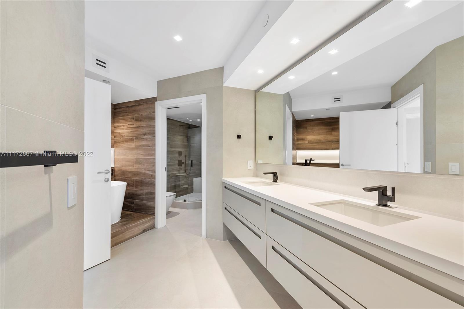 Stunning Hidden Bay “08” line apartment professionally designed/completed by 2id Interiors. Contemporary-style with high-end finishes. Fully automated lighting & motorized blinds throughout. Master suite w/bathtub, double vanity, and walk-in shower. The “08” line is the best line in the building w/total privacy & stunning SE views of the Intracoastal, Atlantic Ocean, & Skyline. Includes 2 parking spaces & storage unit.