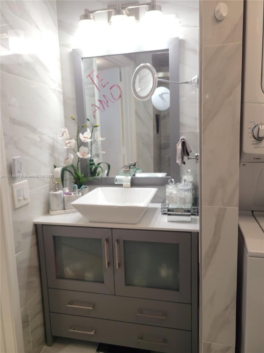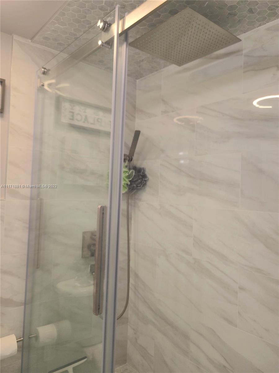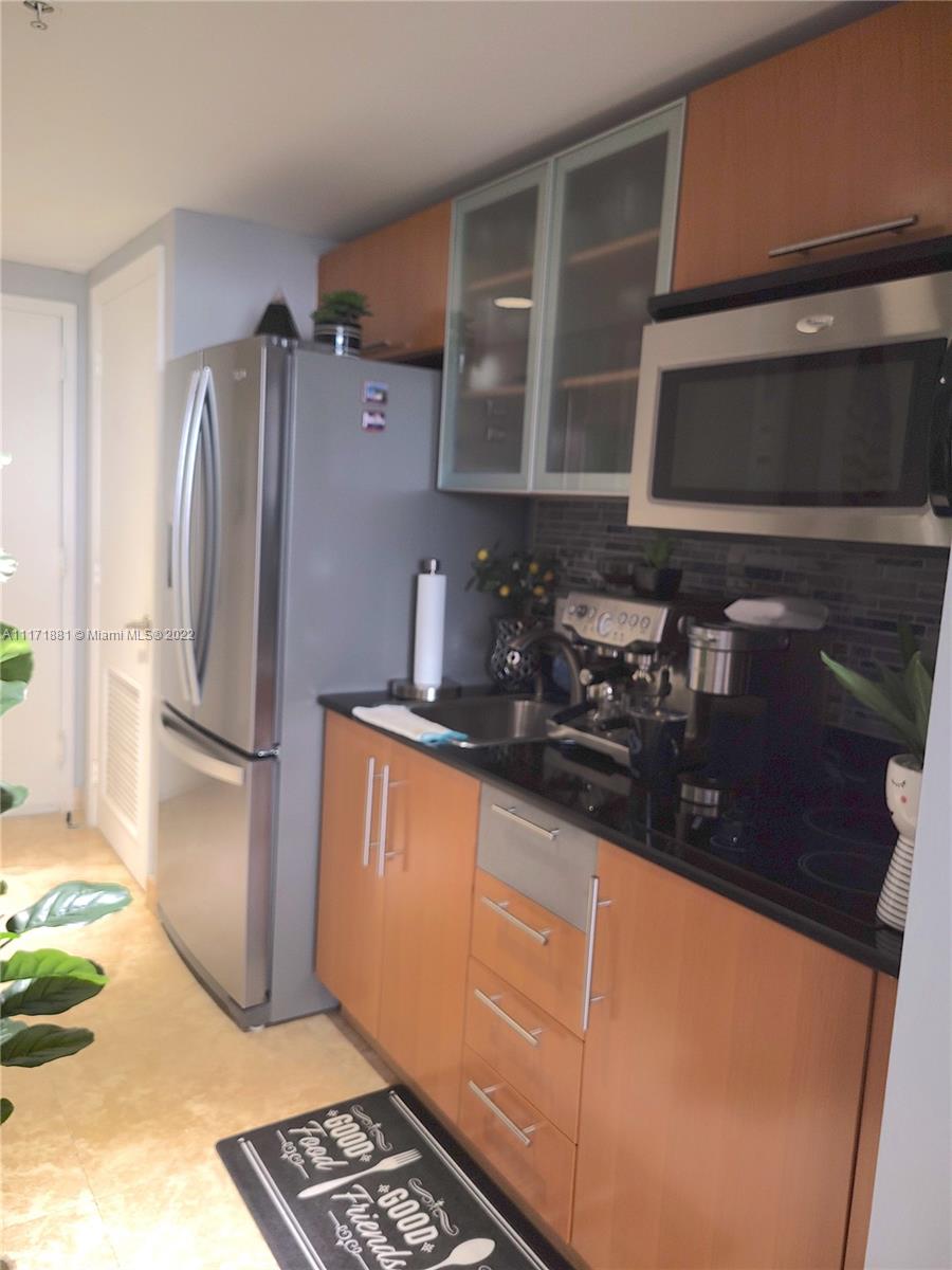 41ST FLOOR STUNNER WITH SWEEPING BISCAYNE BAY & CITY VIEWS FROM THIS TOWER RESIDENCE. UPGRADES!! UPGRADES!! UPGRADES!! TOP OF THE LINE stainless-steel refrigerator & appliances, granite counter-tops in the kitchen along with a beautiful backsplash. **Only Studio with a full Washer & Dryer included** Natural Stone Flooring throughout. REMODELED BATHROOM, NO DETAIL LEFT OUT. Marble ceilings, walls & floors. Ceiling mount shower head, new vanity, toilet bowl. Impeccable. Front desk personnel and security present. Brand New Bldg Amenities (Pool Deck, Pool and Fitness Center). MM Tenant. Appointment a must!