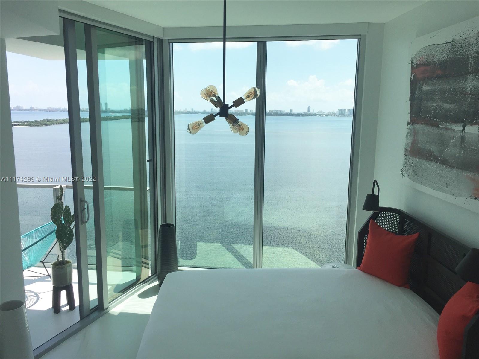 Enjoy the Magnificent and Unobstructed Water Views from this 2 bed/2baths in one of the Most Luxurious Building in Edgewater! Private elevator, foyer, 10 ft ceiling with floor to ceiling glass windows & spacious balcony. Top upgraded finishes and furniture, Miele Kitchen appliances, custom walls, & electric window coverings throughout. Large washer/dryer. Garage parking + Valet. Luxury amenities include beach club, 2 pools, spa, cabanas, water view fitness center and tennis courts. Right in the heart of Wynwood, Midtown and the Design District.