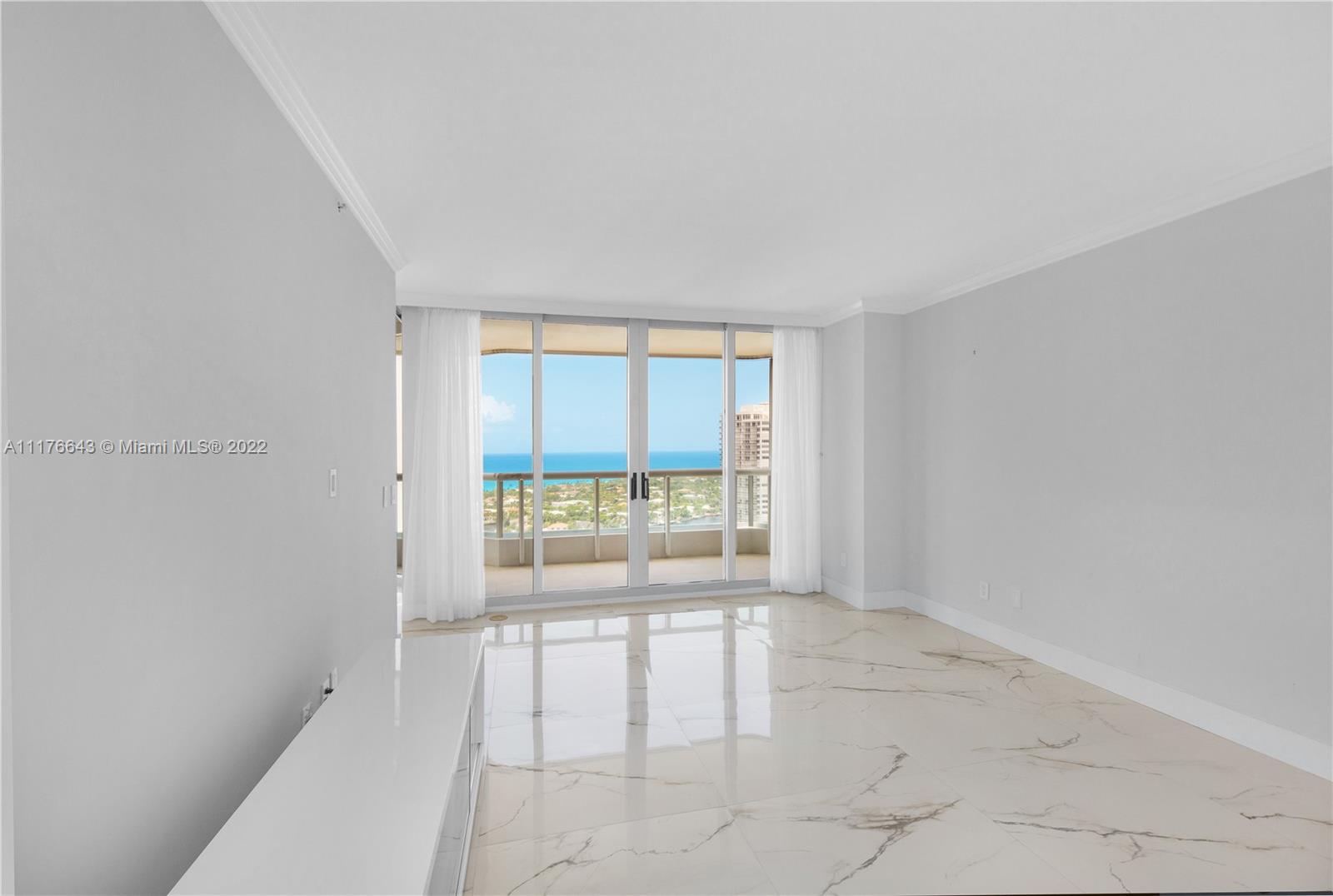 Enjoy gorgeous ocean front views & one of a kind sunrises from your balcony in this exquisitely updated CORNER unit. This spacious unit has a split floor plan including a den. Unit is in pristine shape, completely remodeled & has new cabinetry in the kitchen & laundry room w/ quartz countertops & extended tabletop kitchen with custom storage, new slide in oven with self clean & air fryer, new smart LG washer/dryer, electric shades in the master bedroom, new LED lighting in the laundry room & closets. Large format porcelain tile in the living area & bamboo wood floors in bedrooms. Building has undergone a complete renovation by interior designer Steven G. The point has exclusive amenities including: 3 pools, 4 tennis courts, newly remodeled spa & gym w/ fitness classes, beauty salon & cafe.