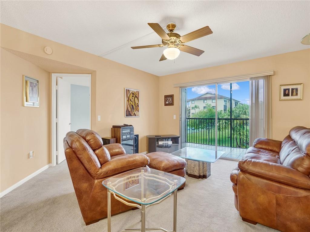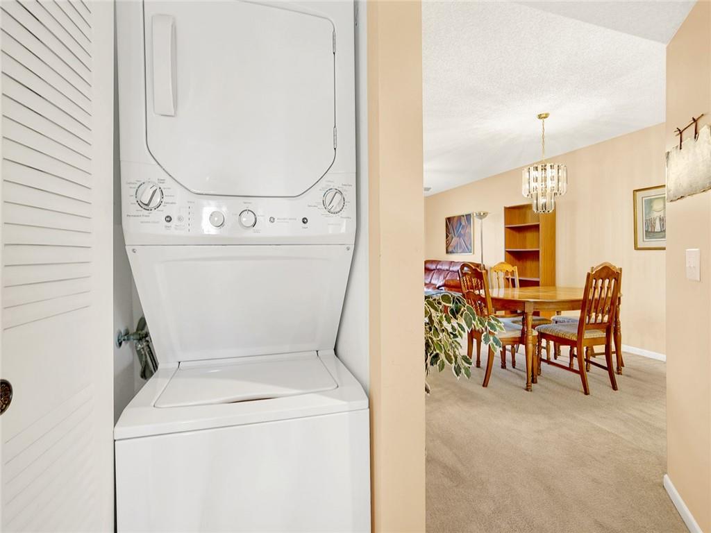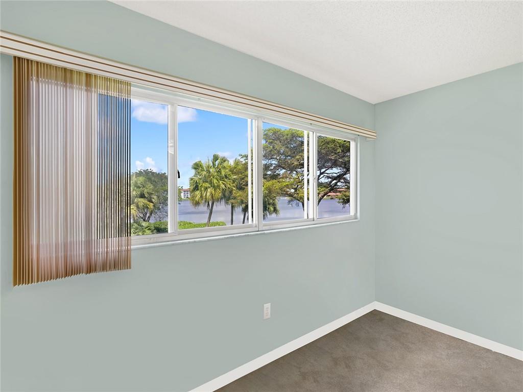 Large Karanda model w wide waterfront views. Spacious plan featuring eat-in cafe, galley style kitchen w wood laminate floors and big living & dining area that opens to a large, screened patio overlooking the lake. Generous sized Master Suite and bath w big walk-in closet, Bedroom 2 has a walk-in closet and adjacent full bathroom w tub. In-unit newer stacked washer & dryer, newer AC &, water heater, newer refrigerator, effortless rolldown and accordion shutters. This building has a newer elevator. Great location in Ivanhoe East section, close to back gate entry. Awesome community amenities, clubhouse, entertainment, gym, transportation. Condo fees include water/sewer, cable tv and internet. Please note, no pets, no rentals during the first 2 years of ownership.