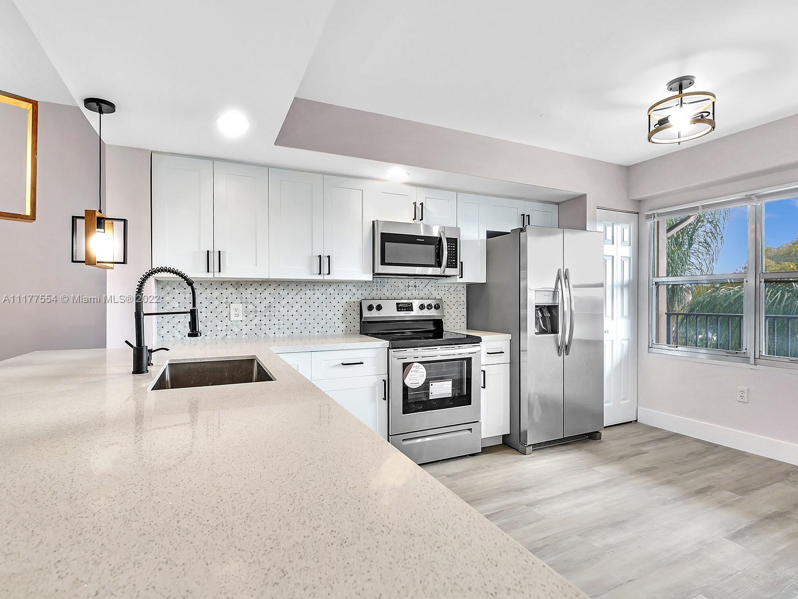 This gorgeous bright, modern, and completely remodel condo would welcome you upon entering the front door into a beautiful concept. 2 Bedrooms, 2Bathrooms. This model offers a relaxing welcoming entrance from the kitchen into the living/dining room. The kitchen has been tastefully upgraded with soft closing white cabinets, white quartz, modern backsplash, and stain-steel appliances, laminate waterproof flooring, smooth walls and ceiling finishes, and very modern bathrooms. Enclosed balcony to enjoy garden view. Be part of the Best 55+ community of the area offering resort-style amenities with numerous options to stay socially and physically active. Come and enjoy endlessly resort amenities!