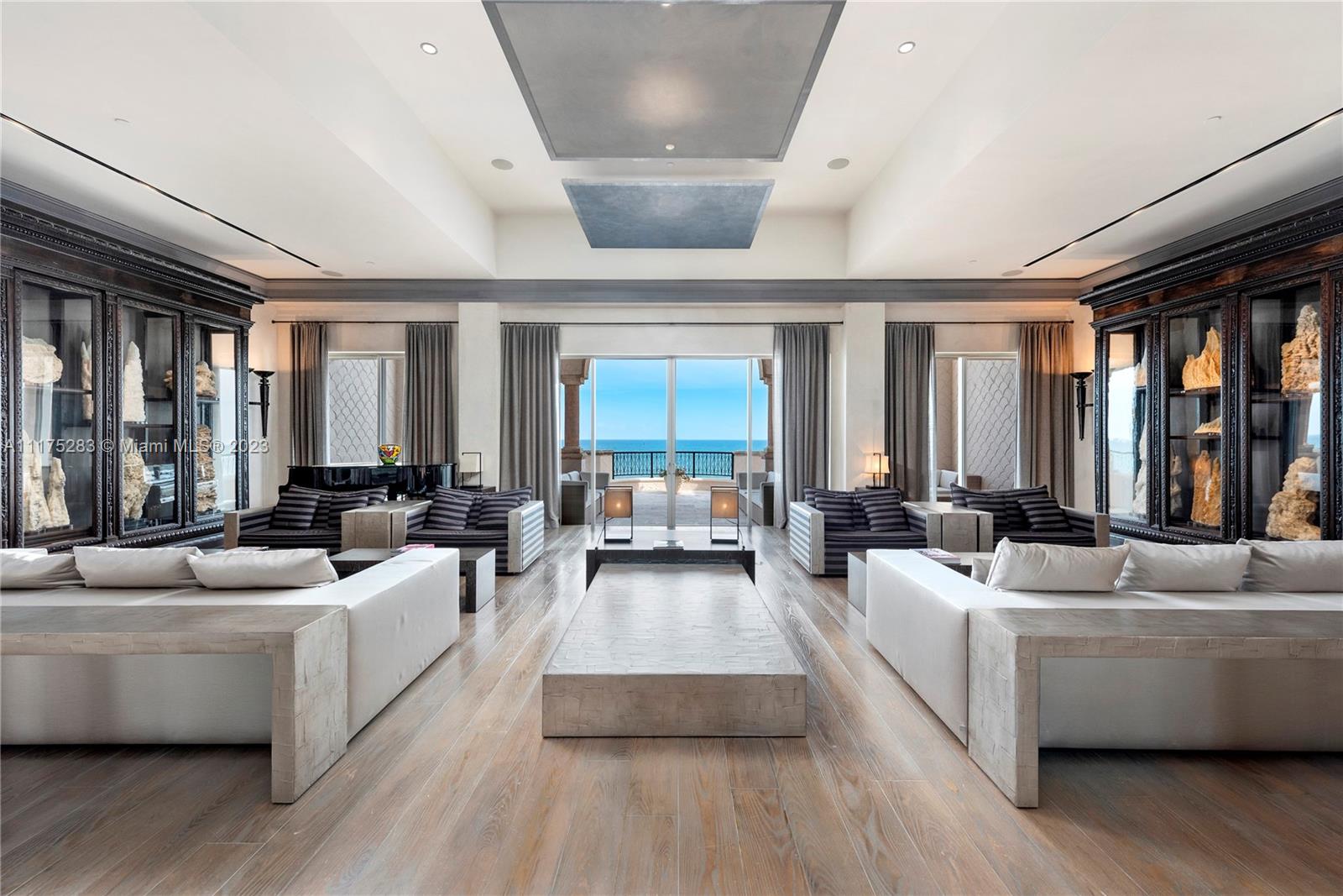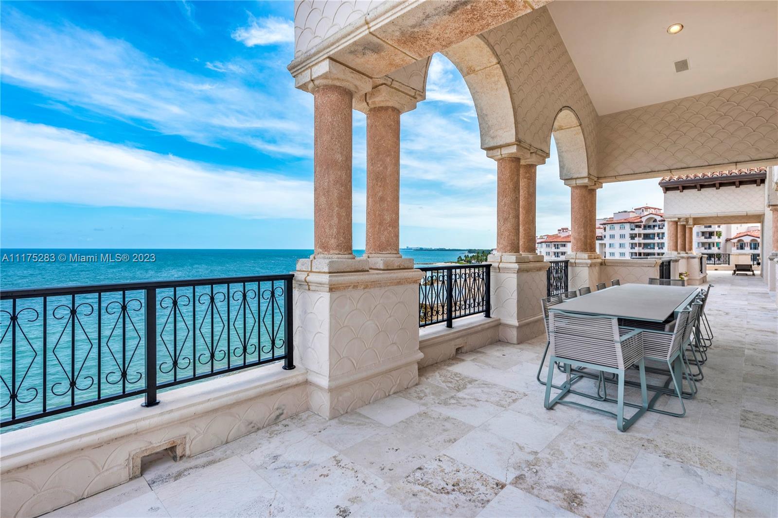 Welcome to your Palace in the Sky! Truly a once in a lifetime opportunity to own this luxurious 6-bdrms, 6/2 baths Oceanfront penthouse property on Fisher Island. Featuring a dramatic grand entrance with soaring ceilings and sweeping full front views of the Atlantic Ocean. This exquisite “Beachhouse” offers approximately 7,610-sq ft of living space expertly designed by esteemed interior designer. A stunning modern kitchen with stainless steel and high-end appliances including Wolf, Thermador and Miele will bring out your inner chef. This home is complete with every comfort imaginable including split floor plan, luxurious spa bathrooms, media room, two offices and a home gym. The home features a Kaleidescape home theatre system and state-of-the-art Crestron system.