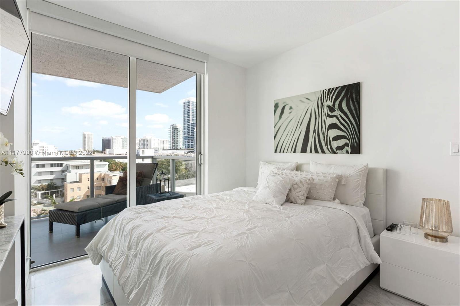 Corner 1 bedroom at Boutique Eden House in Miami Beach. Decorator Furnished condo with Ocean and Skyline views comes with interior and exterior furnishings. Floor to ceiling windows highlight the 180 degree views and wide wraparound balconies. Once you park your car or valet, enjoy the private elevator entryway. Master Bedroom features a private balcony and bathtub in Master Bath. Separate utility/ storage room with full size washer and dryer. Eden House is a full-service building in the heart of Miami Beach. Building offers quiet and serene areas, a grand 2 story lobby, beautiful landscaping, and a gym overlooking the water. Spend the day sunning on property or head to the beach and don’t forget to check out the nearby world-renowned restaurants.