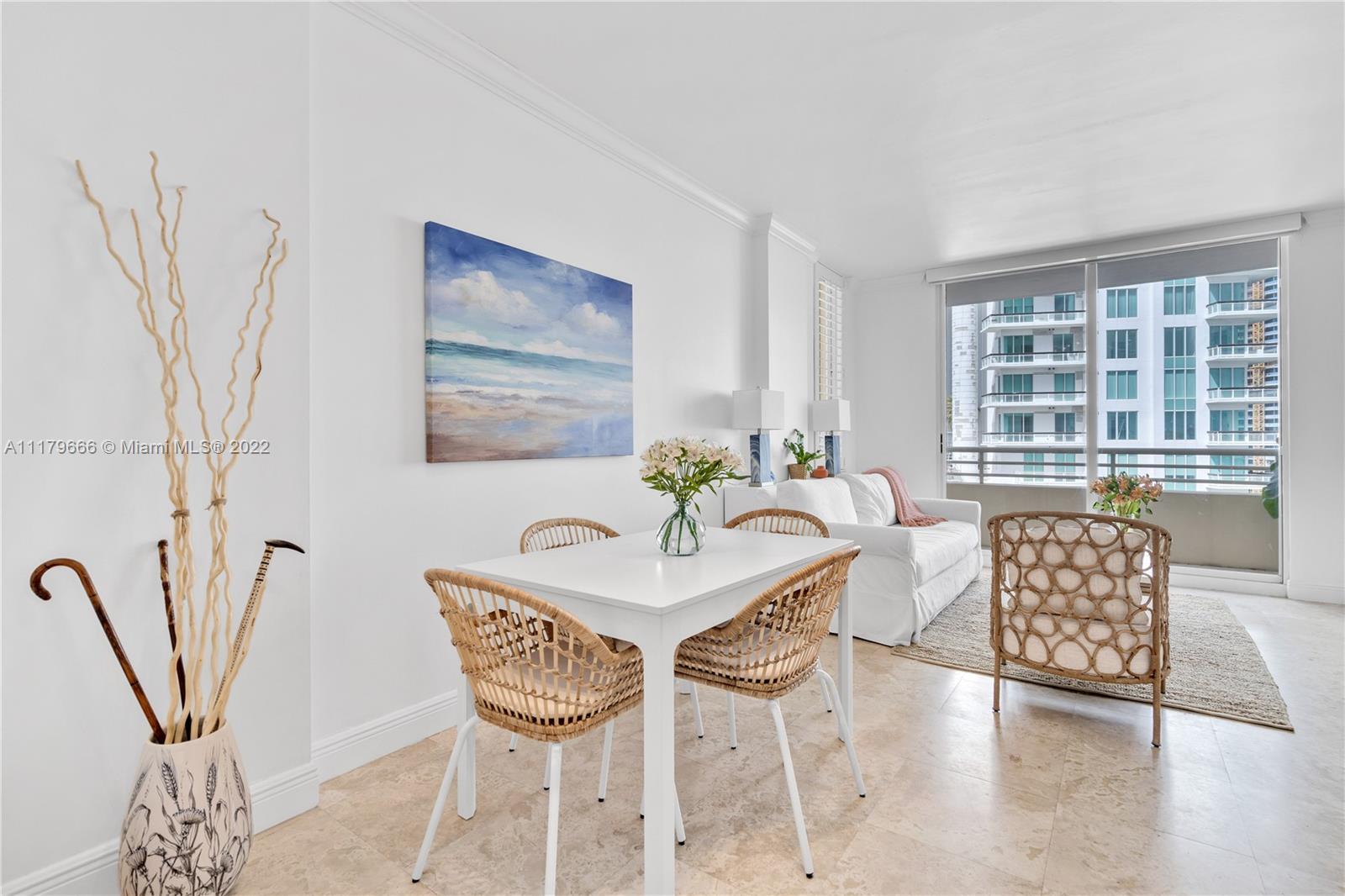Live on the Exclusive Island of Brickell Key. This Beautiful 1 BR l 1.5 BTH located at One Tequesta Point is a Corner unit with a wrap around balcony, views of the Island and Intracoastal waterway. Spacious Master Bedroom, walk-in closet with Travertine Flooring. The building is a Full Service Condo w/24-hour Gated Security, Concierge, pool, two bbq/grill stations, jacuzzi, clubroom, gym, racquetball, squash, sauna & business center. One parking space and Valet parking for guests. Additionally, Brickell Key has a Recreational Park for Children, 1 mile jogging path around the island, gourmet market, restaurants, and much more.