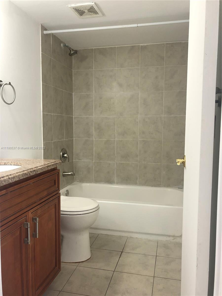 Beautiful, spacious 3/2 in fabulous location. Updated kitchen, tile floors throughout, newer central a/c, new full size washer and dryer, range, refrigerator. Third bedroom has double door entry - can be used as home office. Master features spacious walk in closet and in suite bathroom. Unit is freshly painted and ducts cleaned. Resort style development with community pool, tennis court, gated with 24 hour security, gym and children pay area. Serene lake surrounds the common areas. New roof by HOA for the entire community completed in 2015. Exterior painting in progress. Ample open parking for residents and guests. Agents: read broker remarks.
