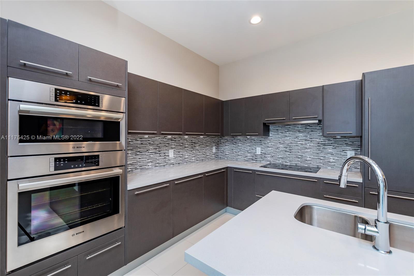 Gorgeous condo with two bedrooms/two bathrooms plus den. The only one in the complex with high volume washer and dryer with beautiful sliding glass door for easy access, tankless Stiebel water heater, wallpaper walls, blackout roller blinds (wireless/battery operated), custom built-in furniture and professional installed TV wall mounts. Stainless steel Bosch appliances: dishwasher, side-by-side refrigerator with ice & water dispenser, microwave & electric range. Smoke detectors, beautiful cabinets & closets. Note: the unit includes two parking slots on 5th floor in front of the elevator. Driving Directions: