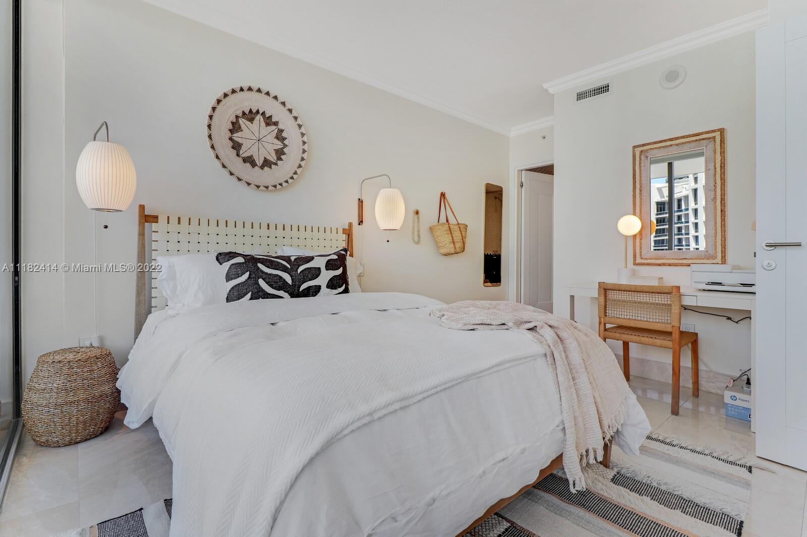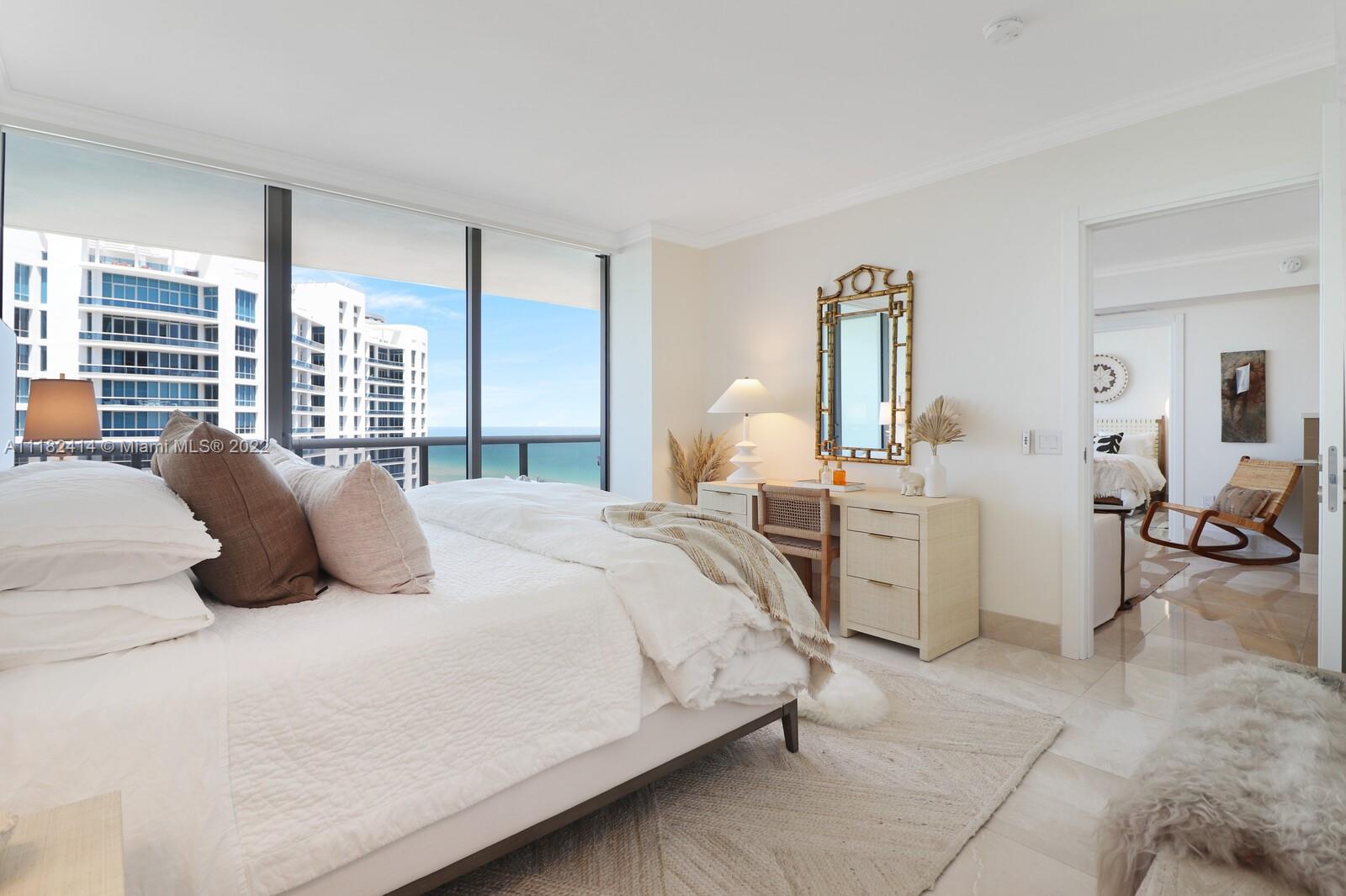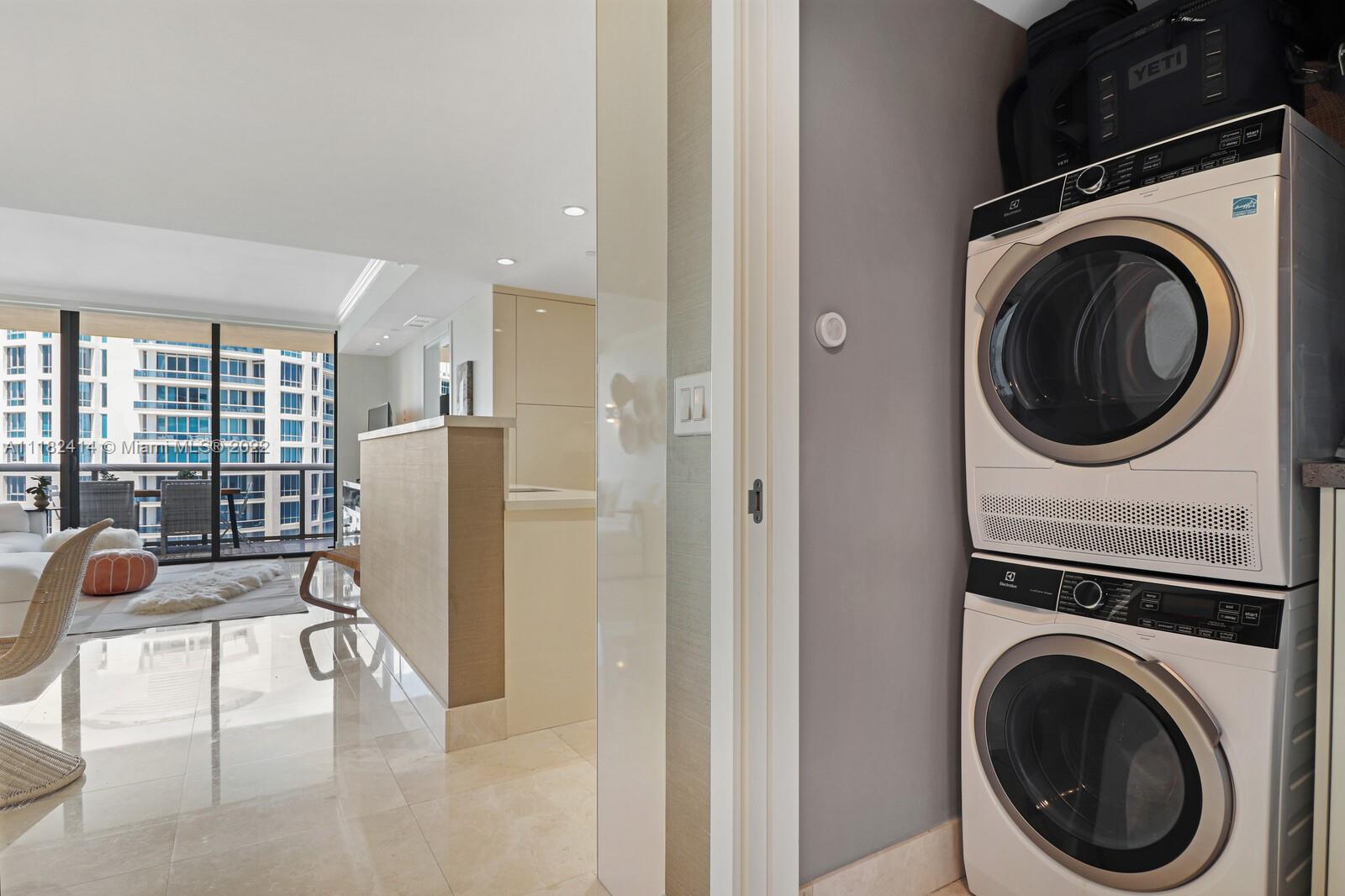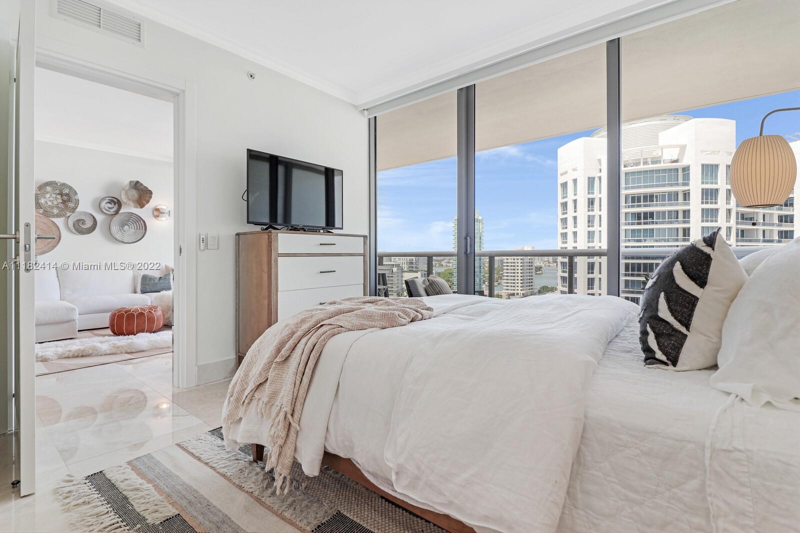 Amazing 2 bed/2 bath unit. Great views of the ocean, Intercoastal & city at the newly redesigned MEi. Enjoy a view of the city and ocean from your spacious terrace or spend an afternoon at the beach. Spacious living room with marble floors and an open kitchen complete with top-of-the-line appliances, wooden closets, a Jacuzzi/SPA, a wine cooler, and more. The guest bathroom was converted into a utility room with a new washer & dryer. Beautifully decorated with high-end furnishings purchased in the last 8 months (available for sale). Outdoor infinity pool, beach service, a fully equipped fitness center & yoga studio, spa, ibrary, tea lounge, and valet parking for 2 cars (no self parking). Only 15 minutes away from Bal Harbour, South Beach, The Design District, Wynwood, and the airport.