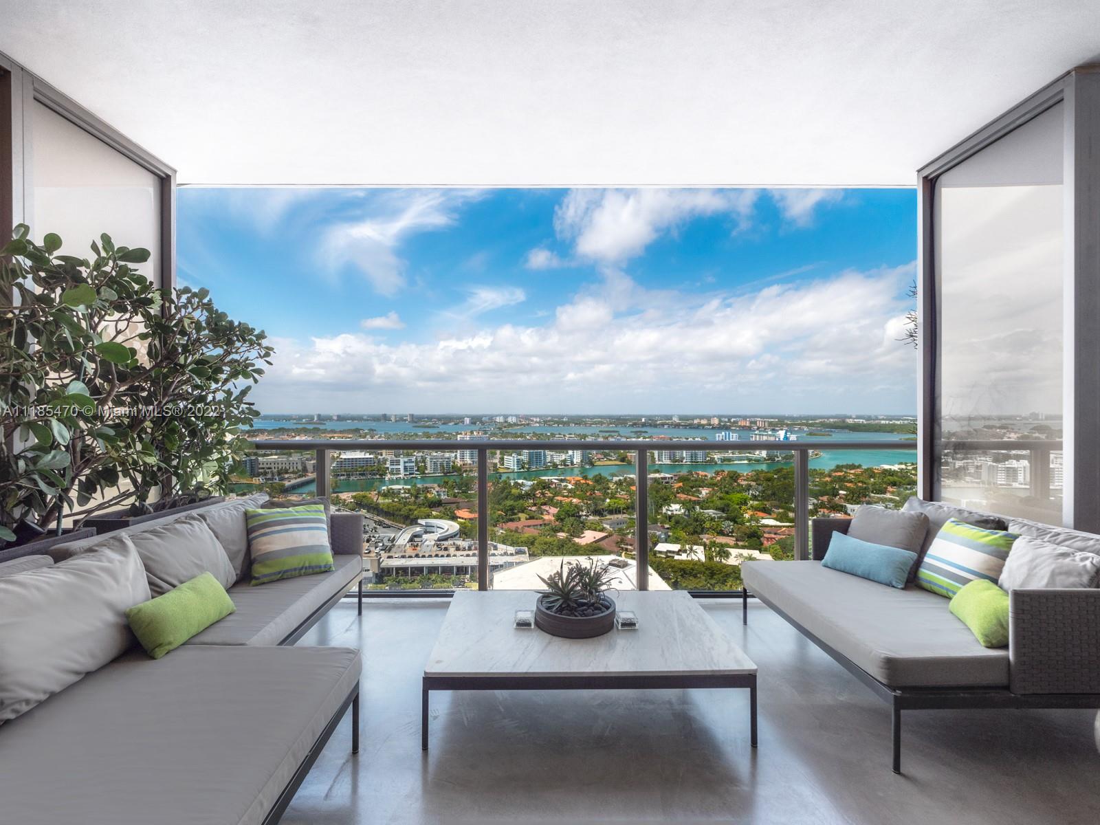 An EXTRAORDINARY FULLY FURNISHED One of a Kind dynamic & contemporary residence awaits you.Featured in South Florida LUXE magazine, this magnificent 4 bedroom +Staff +Family room 5 & 1 half bath unit is a work of art! The well thought and intricate interior designed by PH1 Design is rich and refined with subtle industrial accents like polished concrete floors, raw steel baseboards and crown moldings, warm cedar wood planks along the walls and ceilings,intricate lighting that is sculptural and nestled in tracks highlight refined craftsmanship. East & West balconies are inviting outdoor spaces for lounging and relaxation. Breathtaking views capture Sunrises over the Ocean and Sunsets above the city skyline as well as the bay. St.Regis offers restaurants, Oceanfront pool,Remede Spa &Wellness
