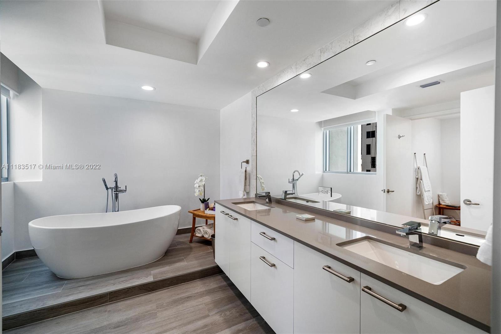 Jade residence 808, located on the SW corner of the building, delight us with Bay and City views. A 2 bed / 2 bath split plan with 1526 SF, offers private foyer and elevator. Its 2 balconies are large enough for entertaining. Tastefully remodeled on shades of grays and whites, it now offers new tile floors, egg-shaped bathtub and other upgrades. The building amenities are top of the line, with 24hr concierge, complimentary valet parking for guests, towel service for the pool, gym and spa. A true Miami lifestyle!