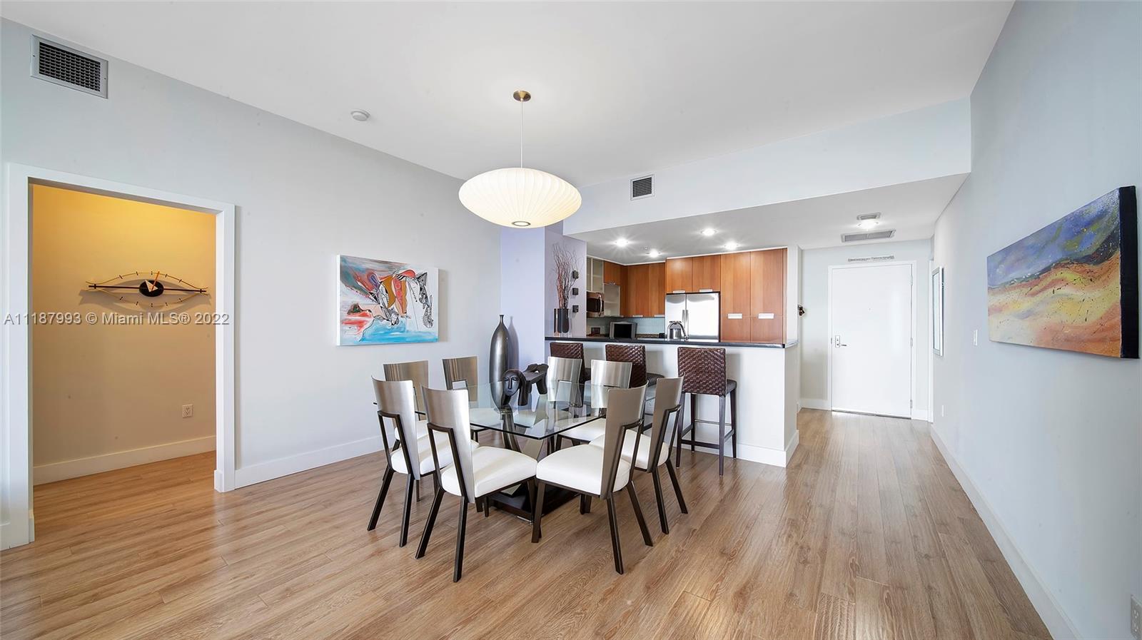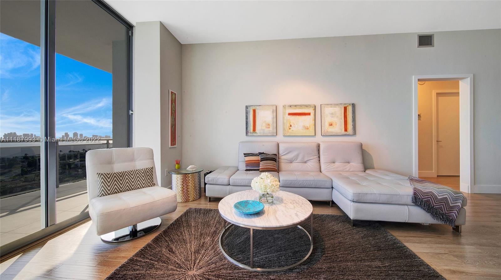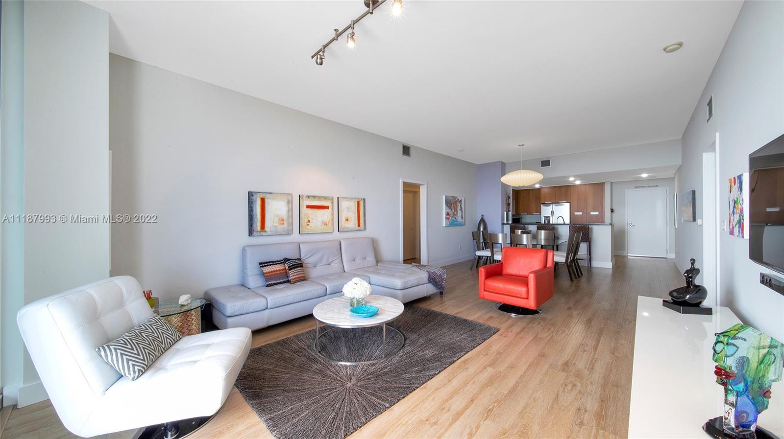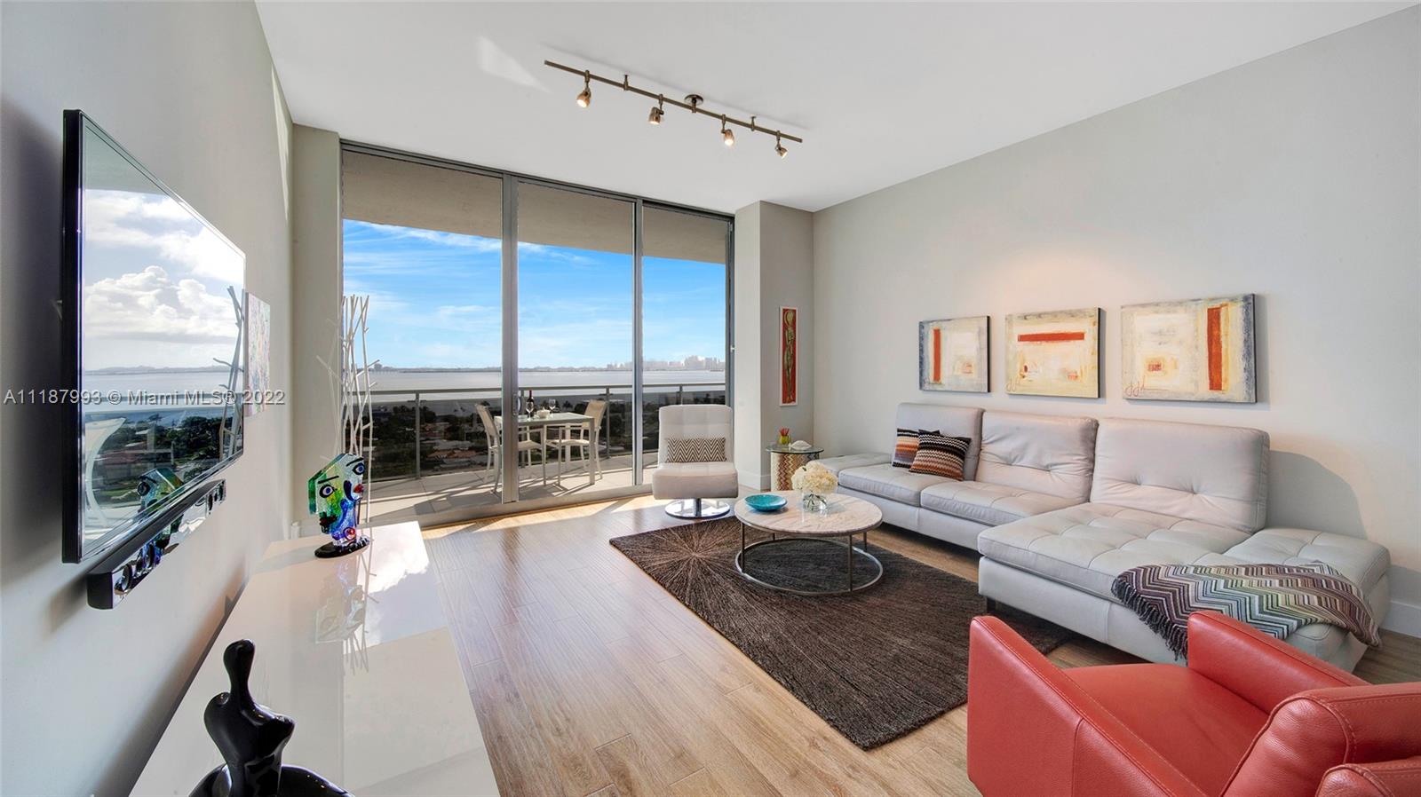 Panoramic South Bay and Downtown’s skyline views, from this extra-large turnkey 2 BR + DEN/2 BA. The unit features a large balcony, 10 Ft high ceilings and floor to ceiling sliding impact windows, wood floors, open kitchen with new SS appliances, granite countertops, new washer/dryer inside, new AC, several closets, and wood cabinetry. DEN turned into XL walk-in closet. Centrally located between Miami Beach and Miami, Great schools. Shopping and waterfront restaurants. Amenities include a heated pool, jacuzzi, and gym. Annual and seasonal rentals allowed. Internet and cable included. Can be sold furnished. $40K ASSESSMENT FULLY PAID BY SELLER.