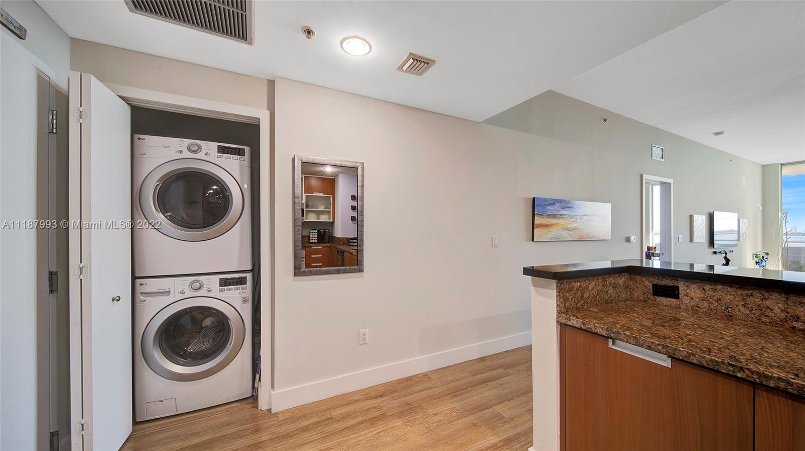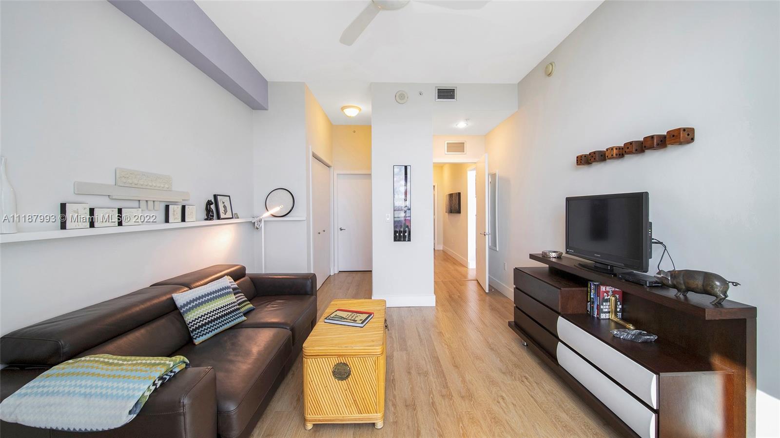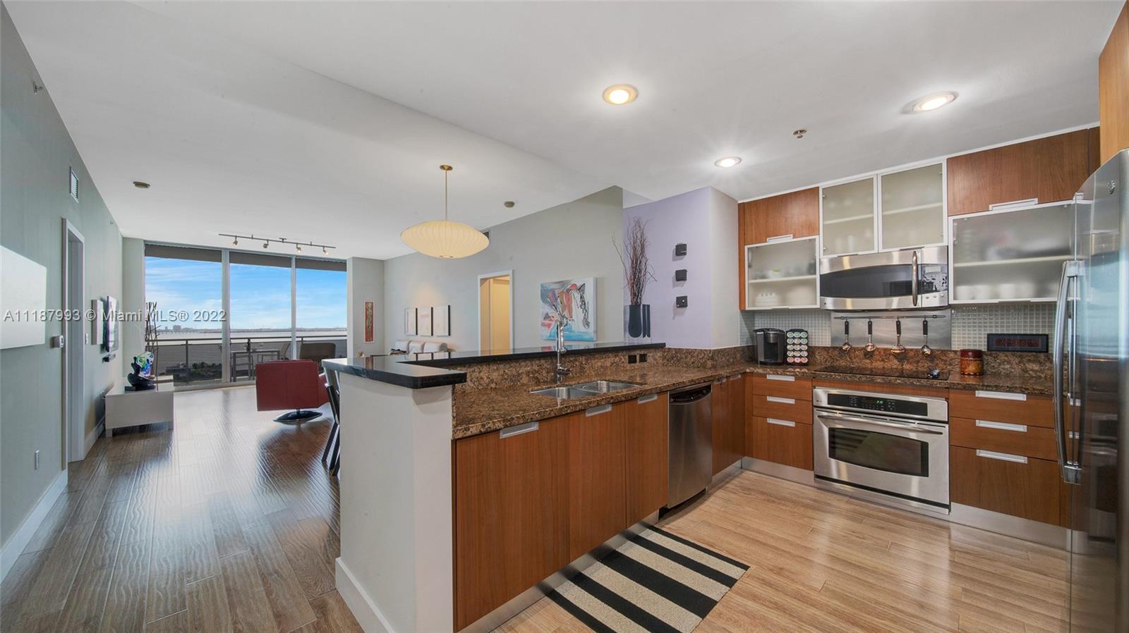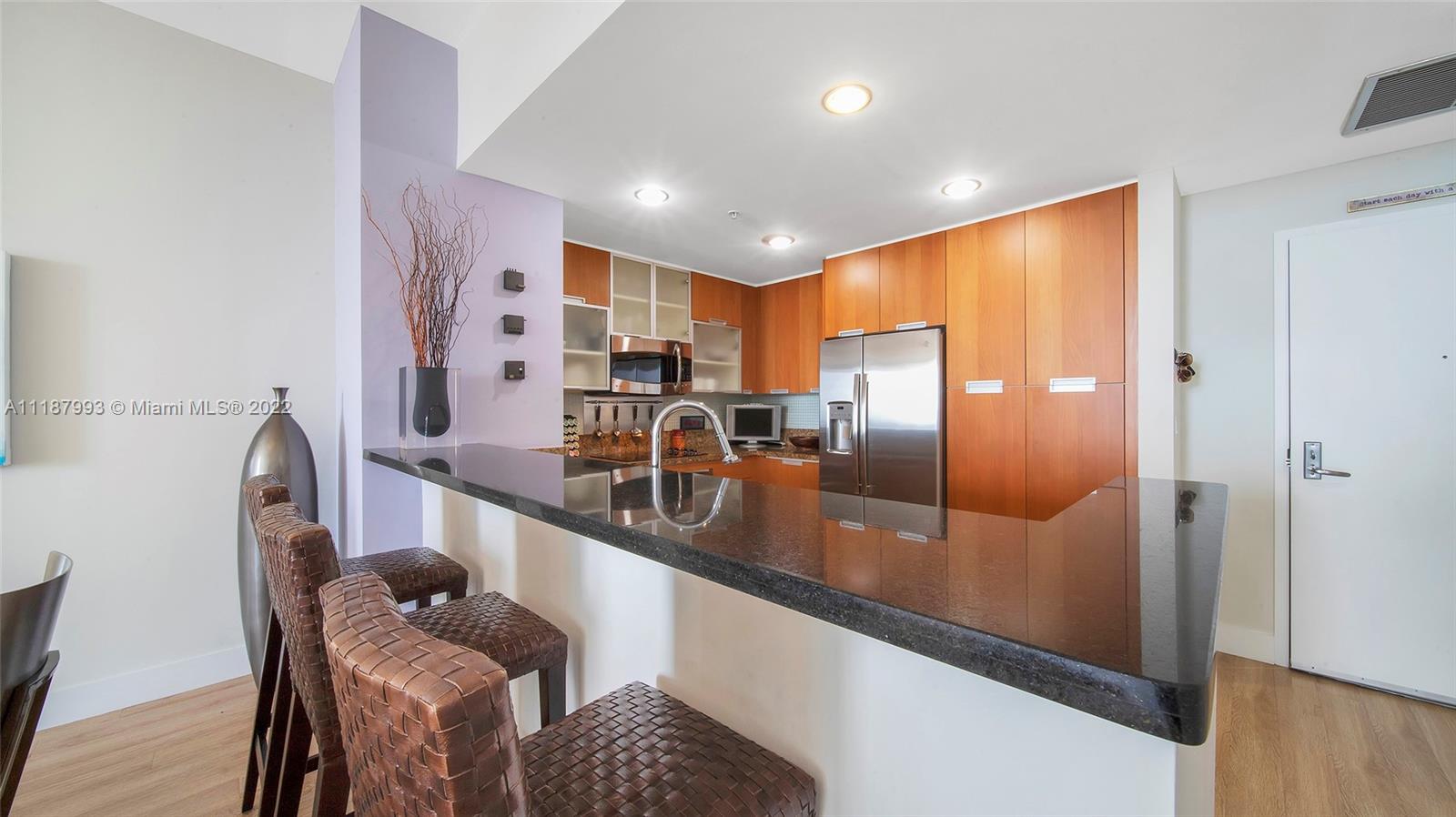 Panoramic South Bay and Downtown’s skyline views, from this extra-large turnkey 2 BR + DEN/2 BA. The unit features a large balcony, 10 Ft high ceilings and floor to ceiling sliding impact windows, wood floors, open kitchen with new SS appliances, granite countertops, new washer/dryer inside, new AC, several closets, and wood cabinetry. DEN turned into XL walk-in closet. Centrally located between Miami Beach and Miami, Great schools. Shopping and waterfront restaurants. Amenities include a heated pool, jacuzzi, and gym. Annual and seasonal rentals allowed. Internet and cable included. Can be sold furnished. $40K ASSESSMENT FULLY PAID BY SELLER.