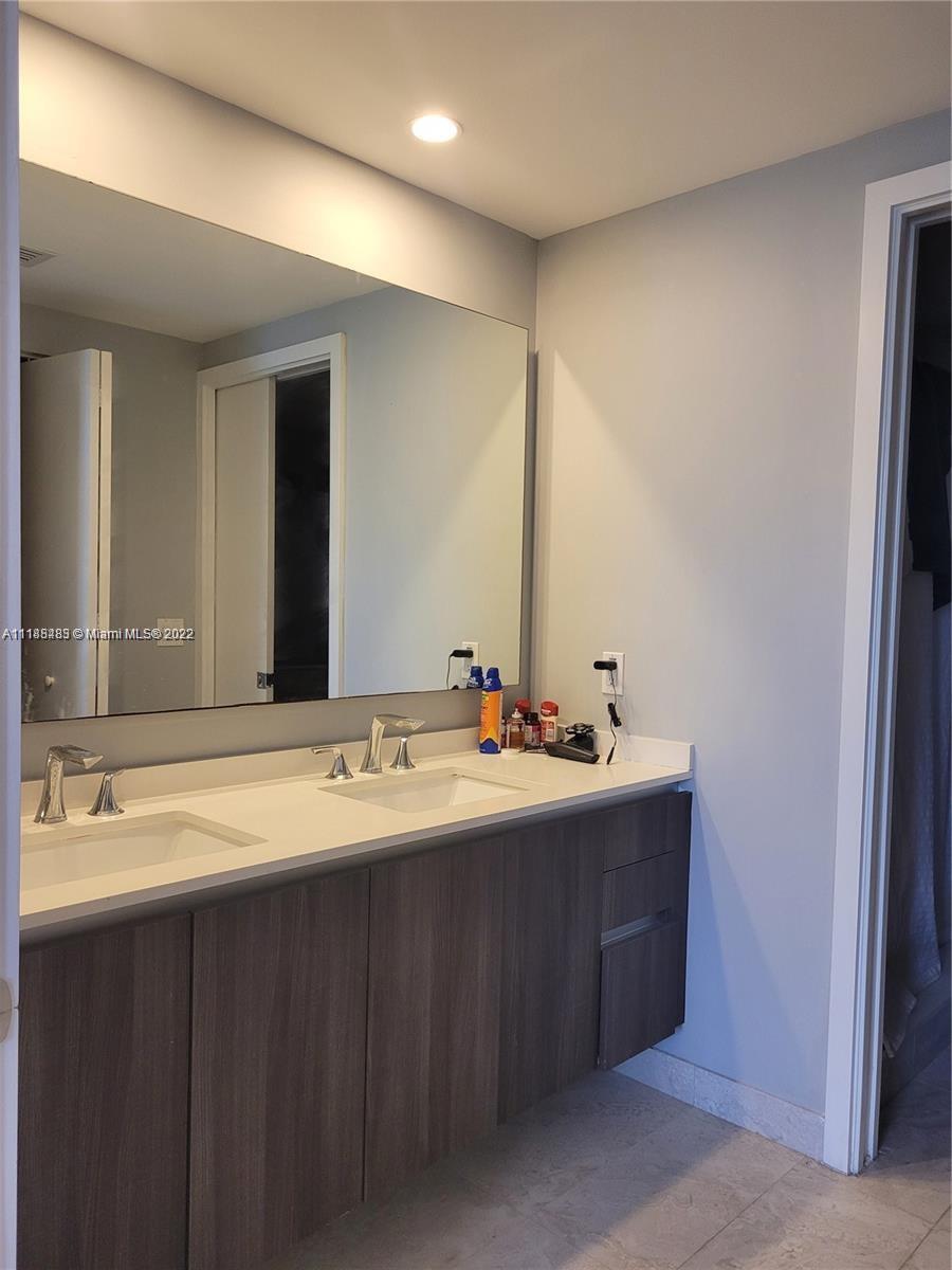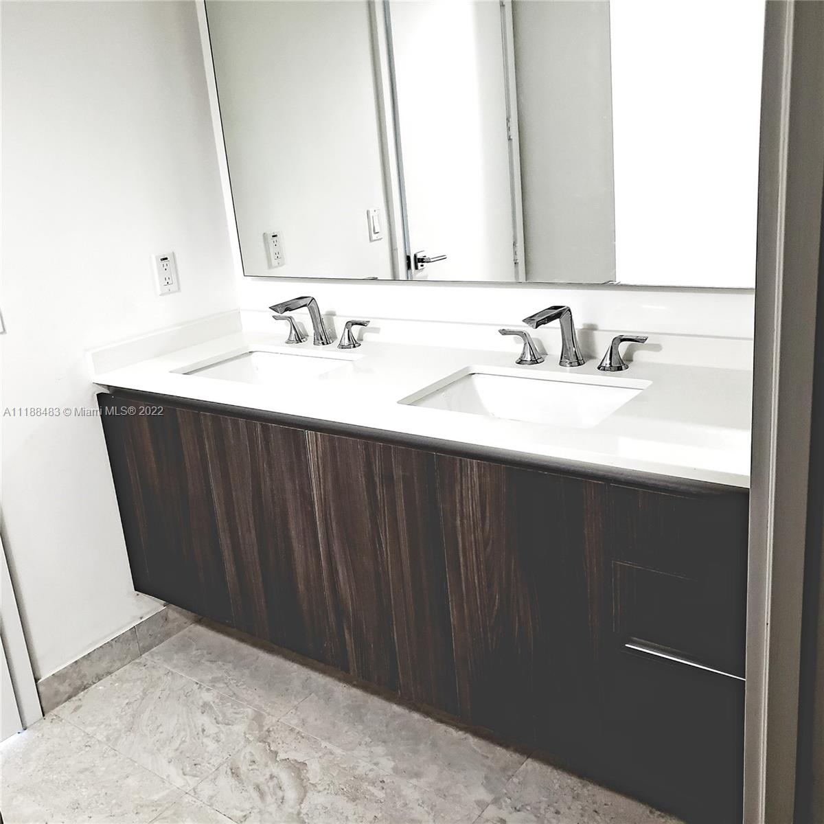 Unique 1 bed 1 1/2 baths in the high 41st floor. Huge sky terrace, panoramic city and bay views, 9-foot floor-to-ceiling glass, 880 sq ft, open living/dining, kitchen Italkraft modern cabinetry, quartz countertop, Bosch SS Appliances. Centrally located in the heart of Arts & Entertainment District, close to Wynwood, Design District, Adrienne Arsht Center etc. Tons of amenities, 2 pools, hot tub, sun deck, lounge area, concierge, gym, BBQ area, spa, lounge, teens room and more.