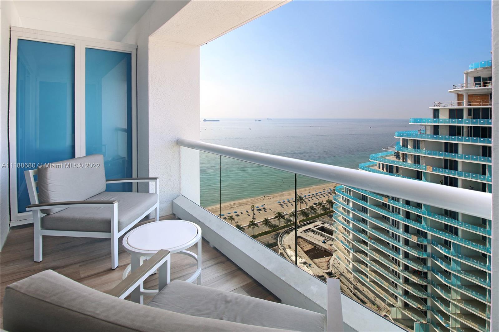 Amazing opportunity to own a turn-key Studio | 1.0 Bath in a beachfront property. Fully furnished. Interiors by Steven G. Great layout. The Ocean Resort Residences - Fort Lauderdale Beach is a full-service property offering resort living at its best! Live here or own it as a second home/investment. HOA includes Daily housekeeping, bi-weekly laundry service, and 24-hour valet included! Access to all amenities, beach chairs & umbrellas (beach attendant), private airport service, bike rentals, and basic cable/internet.