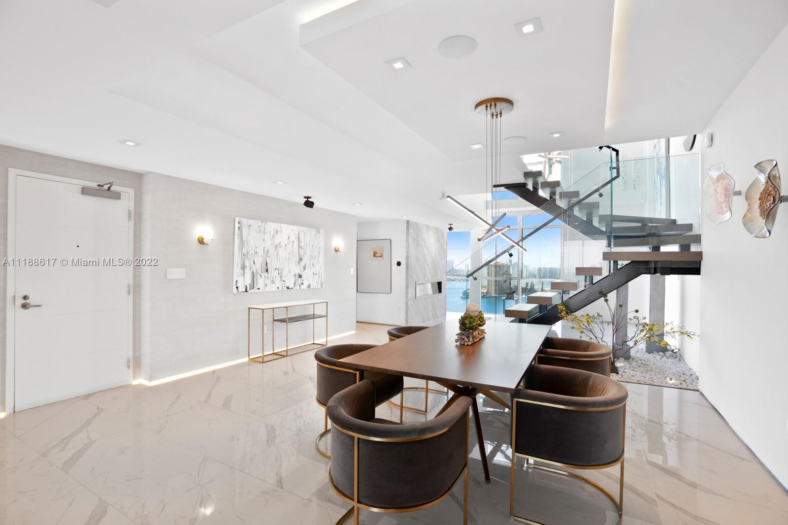 Opulent 4 Bd/4.5 Bth, 3,088 SF tri-level Skyloft with marina dry dock & slips accommodating 100’ yachts. Bright, open concept with floor-to-ceiling impact windows/doors leads to large balcony & rooftop terrace with jacuzzi & fabulous ocean/bay views. Newly renovated, turnkey amenities include porcelain flooring; contemporary lighting; room-darkening electric shades; designer kitchen/baths with Euro cabinetry, quartz countertops, onyx backsplashes & high-end appliances; custom closets; iHome technology. Includes Roche Bobois furniture. Private EV charging station. Walking distance to beach; minutes from world-class shopping & fine dining in Bal Harbour & Aventura, property offers 24-hr. concierge, valet, security;luxury spa & Rejuvenation Center; resort-style pools, cabanas & tennis courts.