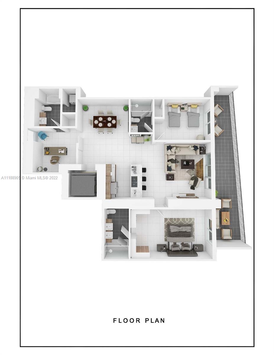 Premium high-floor unit with stunning bay and skyline views from walls of windows. Private balcony runs entire length of this skyhome with access from all rooms. Private elevator opens directly into this 2 Bedroom + enclosed den. This den includes a full bathroom so it is ideal for guests, nanny or extra bedroom. Work from Home or walk to the finance and tech offices outside your doorman lobby. Fast close welcome - tenant exits May 15, 2022. 1010 Brickell delivers resort-quality amenities including rooftop pool, children's room, running track, spa and haman, indoor basketball court, outdoor running track, club house, game room, on-site management and self-park garage.