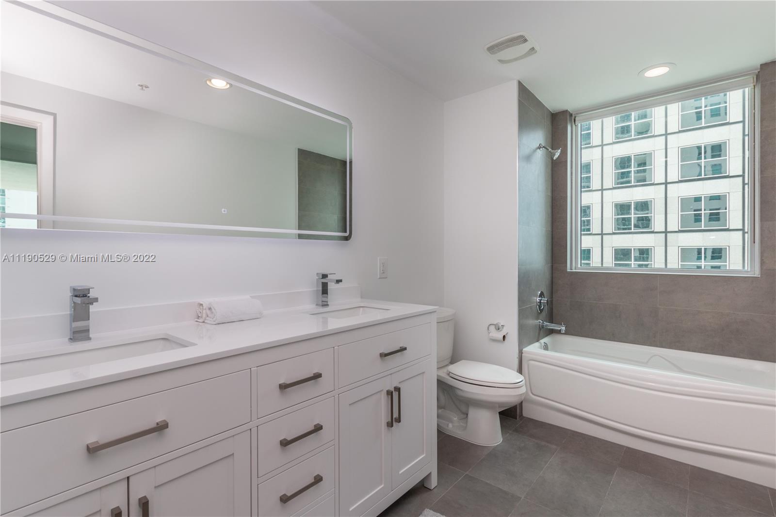 DESIRABLE MET 1 CONDO IN THE HEART OF DOWNTOWN MIAMI. EXQUISITE REMODELED 2/2 CORNER UNIT WITH SPECTACULAR BISCAYNE BAY & CITY VIEWS. NEW KITCHEN CABINETRY WITH PLENTY OF STORAGE, QUARTZ KITCHEN COUNTER TOPS, S/S APPLIANCES, ELONGATED COUNTER BAR, LARGE STACK WASHER & DRYER. OPEN LIVING AREA WITH PLENTY OF NATURAL LIGHTING FROM ITS 9 FT FLOOR TO CEILING WINDOWS. SPACIOUS L-SHAPED BALCONY OVERLOOKING CITY AND BISCAYNE BAY. NEW CERAMIC FLOORS THROUGHOUT. UPGRADED MASTER BATHROOM WITH NEW WHITE WOOD VANITY, TILED SHOWER, SEPARATE TUB. 2ND BATHROOM UPGRADED WITH NEW FLOATING VANITY. SPACIOUS BEDROOMS WITH WALK-IN CLOSETS. 5 STAR AMENITIES INCLUDING POOL, FITNESS CENTER W/YOGA STUDIO, BUSINESS CENTER, SPA W/ SUANA, CHILDREN'S PLAY ROOM, CLUB ROOM, ON SITE NOVIKOV RESTAURANT AND MUCH MORE!
