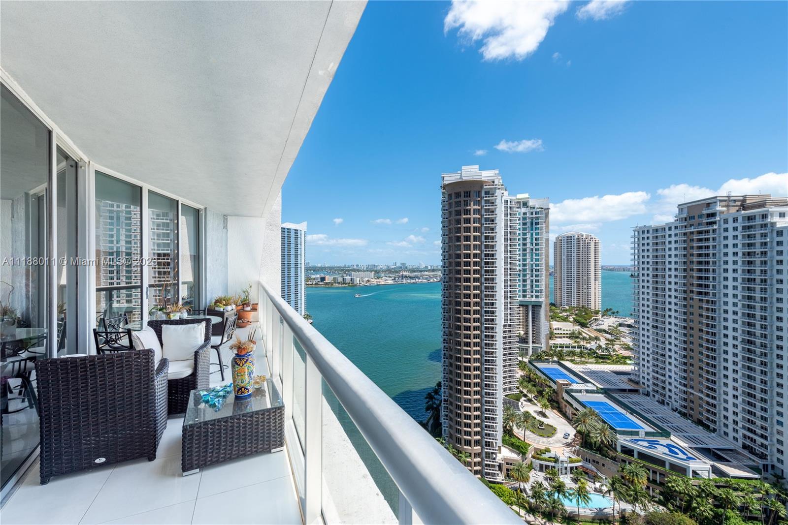 Spacious 2bedrooms, 2 bathrooms + DEN. Spectacular views to the east: Port of Miami, Key Biscayne, Downtown & the ocean!!!! Unit features: 24 x 24 tile in living areas, spacious den area can be converted into 3rd bedroom, amazing sunsets of city and bay views from tiled balcony. Balcony access from both bedrooms and living room. GREAT DEAL!!! ASKING PRICE PER SQ FT IS BELOW RECENT COMPS! Unit Is rented at $5,800 per month until August 2023.