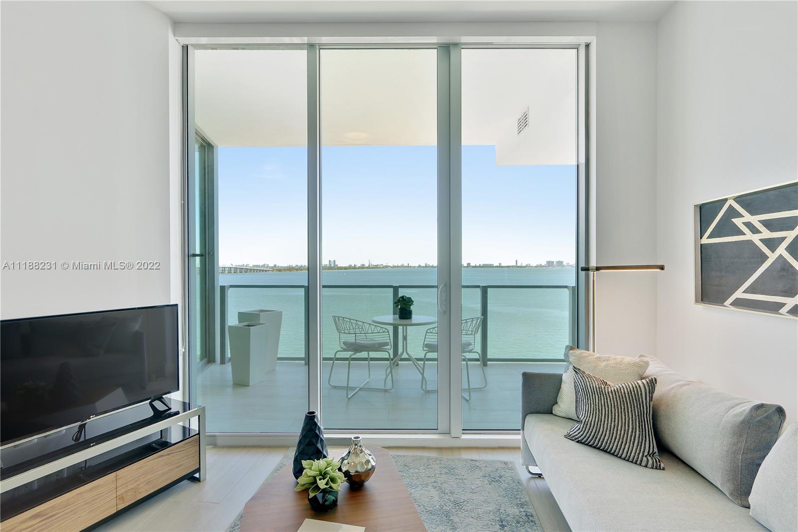 Fully finished unit, resembles a model unit. A Must: 2 INDIVIDUAL PARKING SPACES + PRIVATE STORAGE CAGE. 2 Beds + Den/3 Baths. Extraordinary view from living room & both bedrooms, the bay is your backyard! 1 of the 2 parking spaces & storage cage are located on the same 5th floor. Unique unit with an additional quartz topped island in the kitchen for extra cabinets & cooking space. Neutral porcelain floors, California closets, both roller shades & blackouts in bedrooms, roller shades in the Living Room. High-end furniture, rugs, lamps & decor (negotiable). Ready to be occupied.