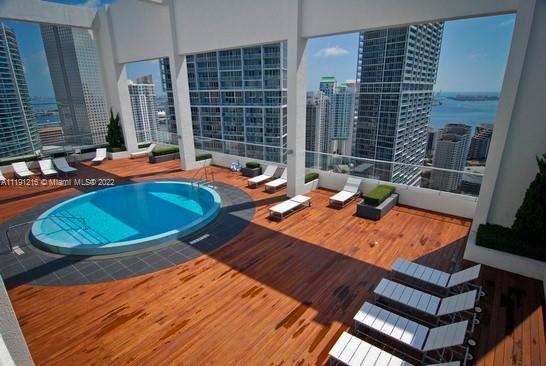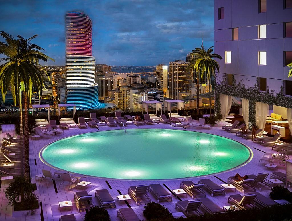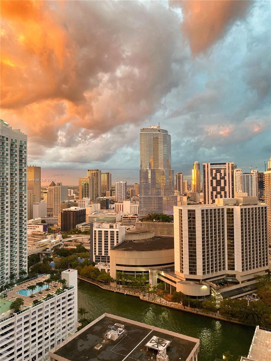 Stunning 1bed/1bath 32nd floor unit in luxury condo in heart of Brickell. Walking distance groceries, eateries & shops. Steps from transit & Underline park. Immaculate ceramic floors & European-style kitchen w/ quartz counter & stainless steel GE & Bosch appliances. Floor-to-ceiling windows lead to glass-railed balcony from living room & bedroom for amazing natural light & water views of Miami River, Biscayne Bay & skyline. Master bedroom walk-in closet. Large bath w/ marble counter. Bathtub & glass-enclosed shower. In-unit washer/dryer. Resort-style amenities:heated infinity pools, spa, jacuzzi, sauna, gym, lounge, game rooms, movie theater, concierge, 24hr security, valet guest parking & 42nd floor rooftop pool deck w/ breathtaking Miami views! 1 assigned parking spot in private garage.