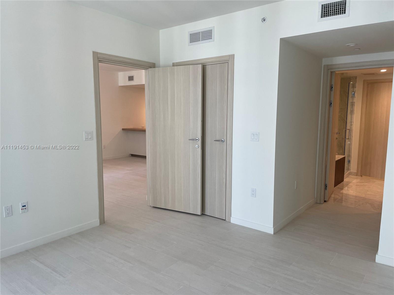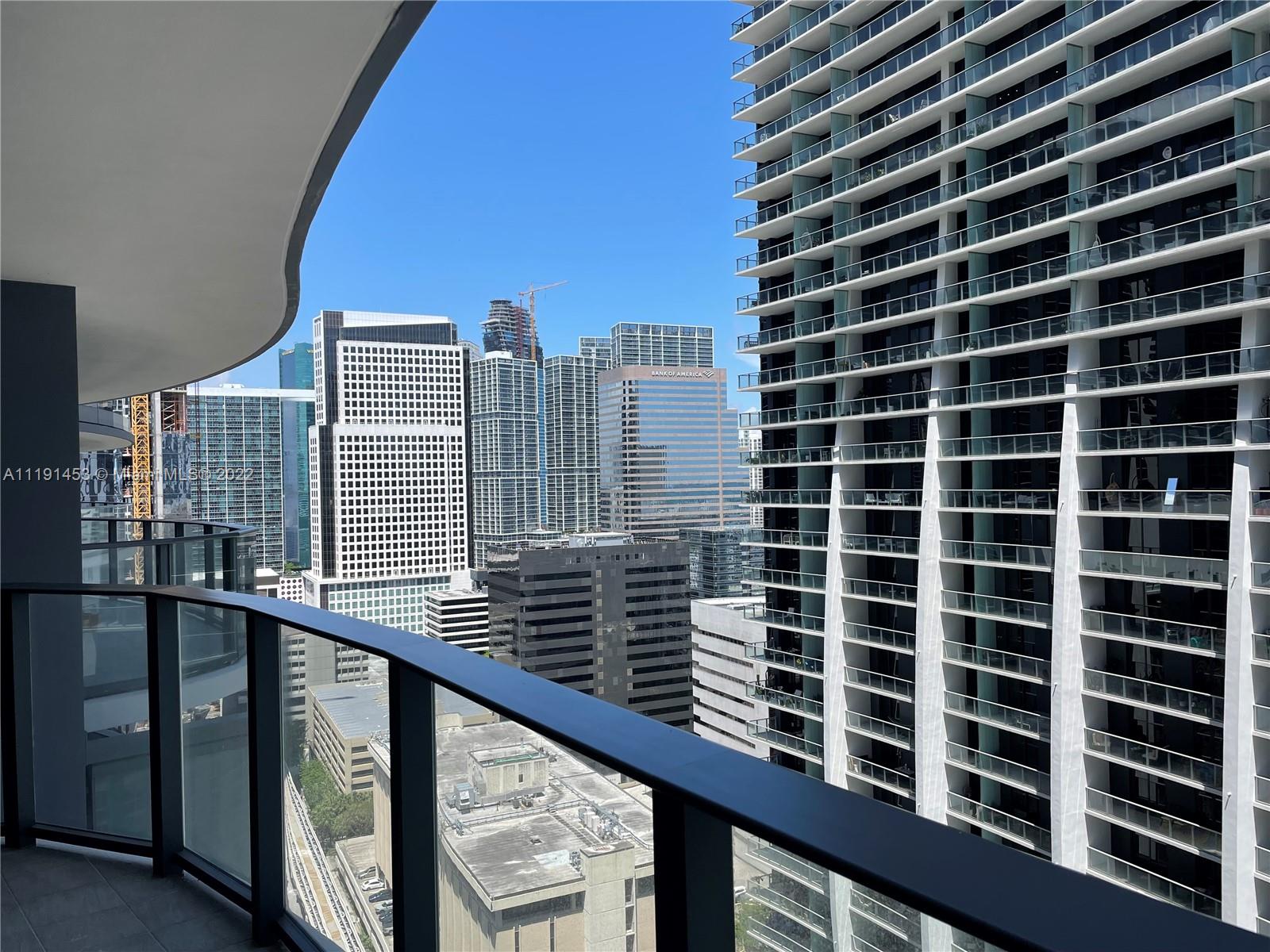 This brand new unit has never been occupied is the only 1 bedroom & 1 bathroom line that faces east with water views. Open Balcony and impact glass floor-to-ceiling windows. Beautiful kitchen cabinetry, Italian doors, Miele appliances, washer & dryer, marble floors. This luxury building is ideal for residents or investors. Developed by Ugo Colombo offers an exclusive lifestyle with five-star service and amenities: theater room, a lounge area, billiard room, wine bar, and children's playroom. Spectacular rooftop pool with 360-degree views of Miami and Biscayne Bay. Sky Spa features a steam, sauna, relaxation and treatment rooms, a fitness center, pilates, yoga and spin studio. Walking distance to the best shops, restaurants, and entertainment options in Brickell.