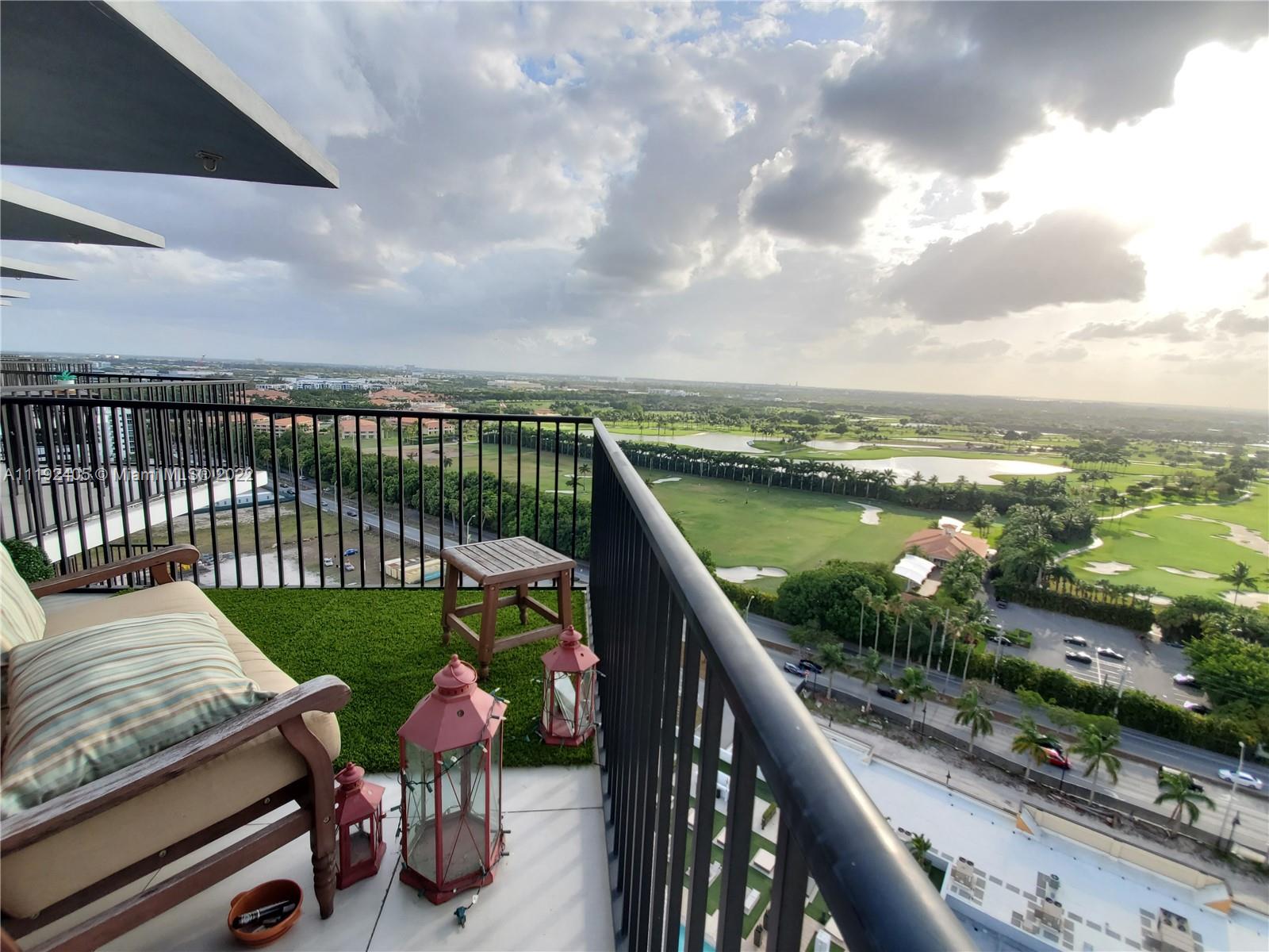LOCATION AND THE BEST VIEW!! In the heart of DOWNTOWN DORAL area 1BED/1BATH + DEN can be used as a 2nd bedroom, 19th HIGH FLOOR, SPECTACULAR GOLF & CITY VIEW, porcelain tiles throughout the unit, stainless steel appliances, quartz countertop, Italian cabinets, full size washer/dryer, 1 parking space. This beautiful building offers valet parking, stunning infinity pool, fitness center, spinning area, sauna, multi-purpose social room, children’s playroom. Resort style amenities. Walking distance to Restaurants, Publix, Parks, Schools, ONLY INVESTORS!! unit is rented until January 15, 2023.