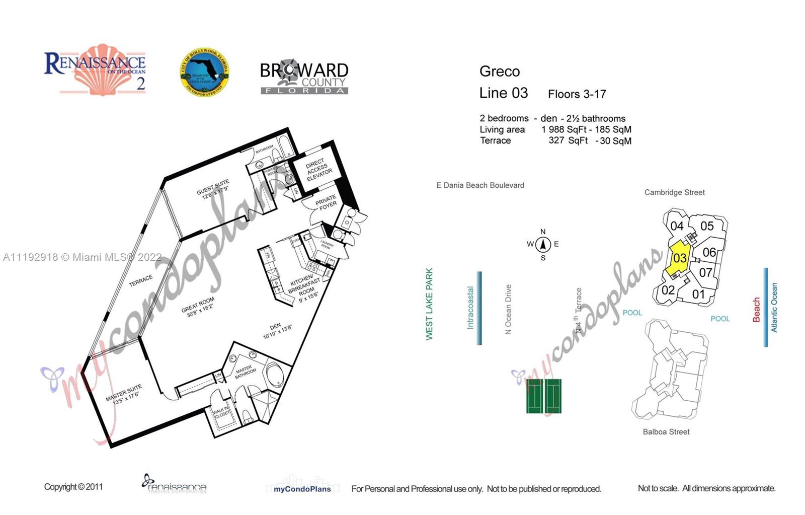 LIVE ON THE BEACH, PRIVATE ELEVATOR OPENS INTO YOUR SPACIOUS APOINTED LIVING AREA BEAUTIFUL RENOVATED , TWO BEDROOM TWO AND HALF BATH,GOURMET KITCHEN JUST COMPLETED HAS CUSTOM WHITE GLOSS CABINETS, BOSCH APLIANCES , TWO WAL OVENS, , QAURTZ COUNTERTOP, SEPERATE LAUNDRY ROOM WIHT NEW WASHER, DRYER SINK ,CABINETS, , PORCELAIN FLOORING THRU OUT HOME, NEW HIGH IMPACT WINDOWS , MOTORIZED SHADES . A SPLIT FLOORPLAN, OPEN CONCEPT, FORMAL DINING, , UNDER 2000 SQAURE FEET, HUGE TERRCE, MOTORIZED BLINDS . THE RENAISSANCE ON THE OCEAN OFFERS BEACHFRONT LIVING GREAT AMENITIES. 24HR CONCIERGE SERVICE, VALET, GARAGE PARKING, STORAGE ROOM, CAR WASH AREA , FITNESS CENTER with MASSAGE and PARTY ROOMS. Building has a CAFE and ONSITE MANAGEMENT and 24HR SECURITY.TWO POOLS, NEXT TO PARK