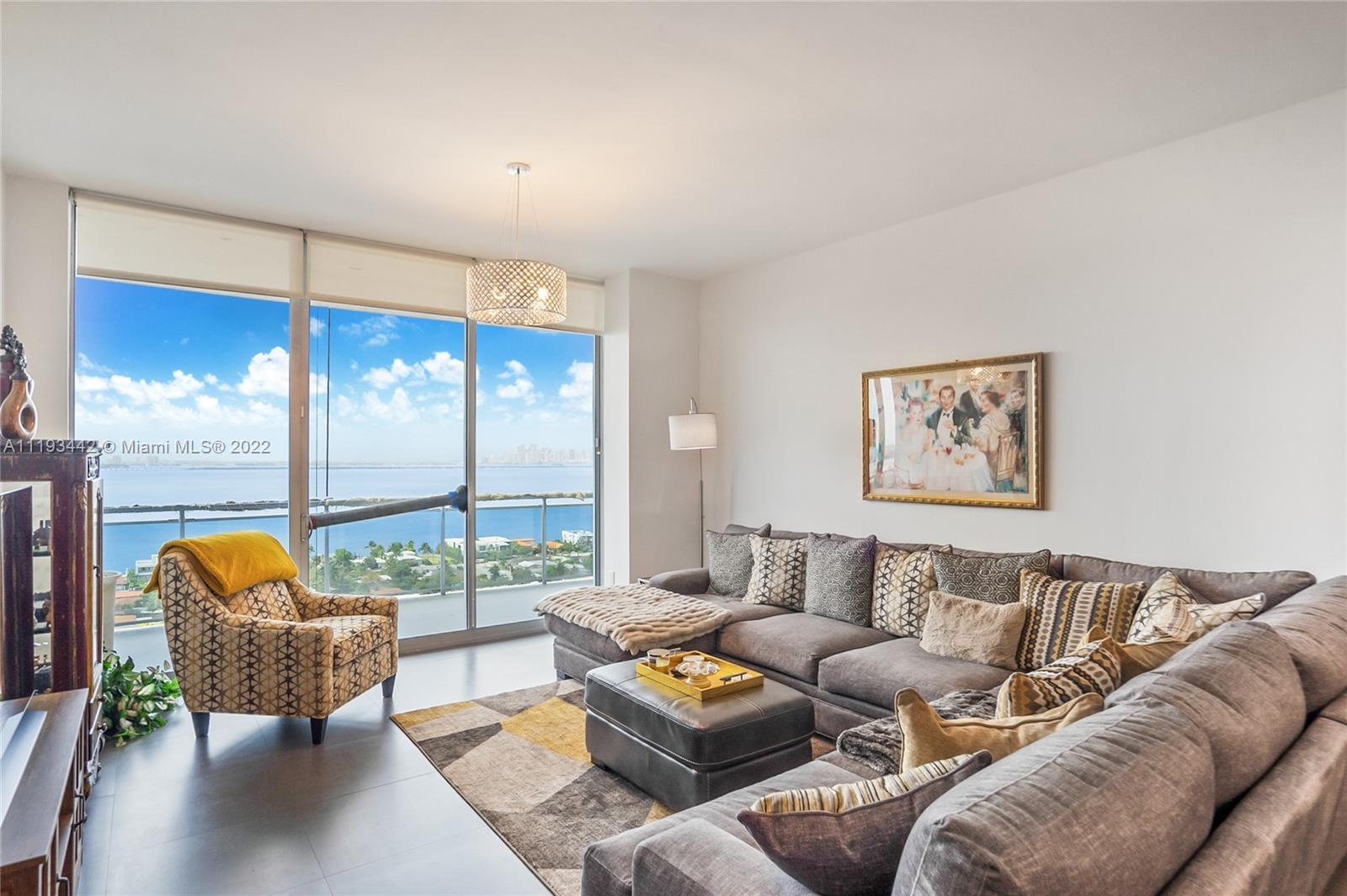Premier South Exposure with exceptional & never-ending Biscayne Bay & Miami skyline views. Large split bedroom floor plan plus a large DEN for office space or nursery. Where else can you find such a view and space for this value? The Lexi offers double garage parking, a large storage unit, and incredible interior space with 11' high volume ceilings. Condo living is hassle-free while offering great amenities, low maintenance, and a central island location where anything Miami can be available within minutes. The retail space below offers a new bakery & awesome Sushi. Tenant occupied until June 22 and easy to show with advanced notice.