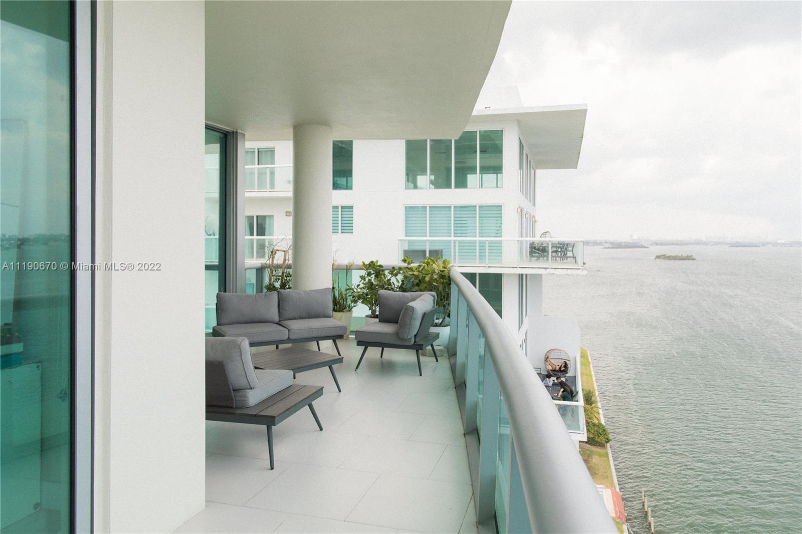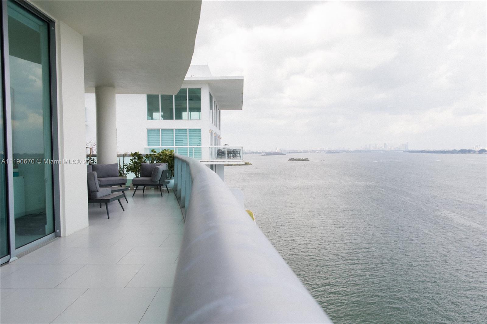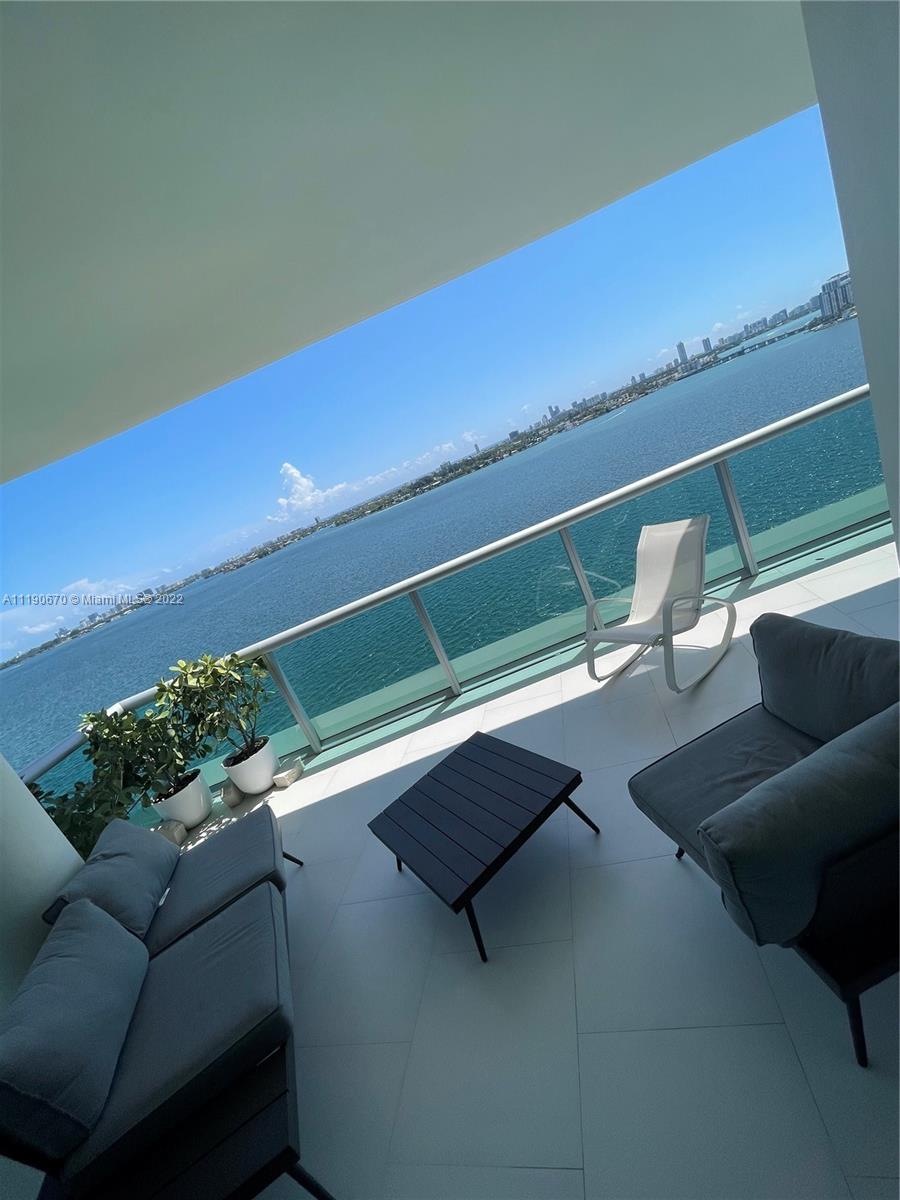 One of a kind spectacular water view flow-through 3 bedrooms, 3 bathrooms corner unit located at the prime Miami Beach location nestled in North Bay Village. Panoramic views of Miami Beach, and open bay from every room. 690 SF (64 SM) of sunrise and sunset terraces. Comes equipped with a private elevator vestibule, gym, community room, sauna, concierge service, extra private storage, and brand new docks. The roof top pool deck and jacuzzi provide access to amazing views of Miami and beaches.