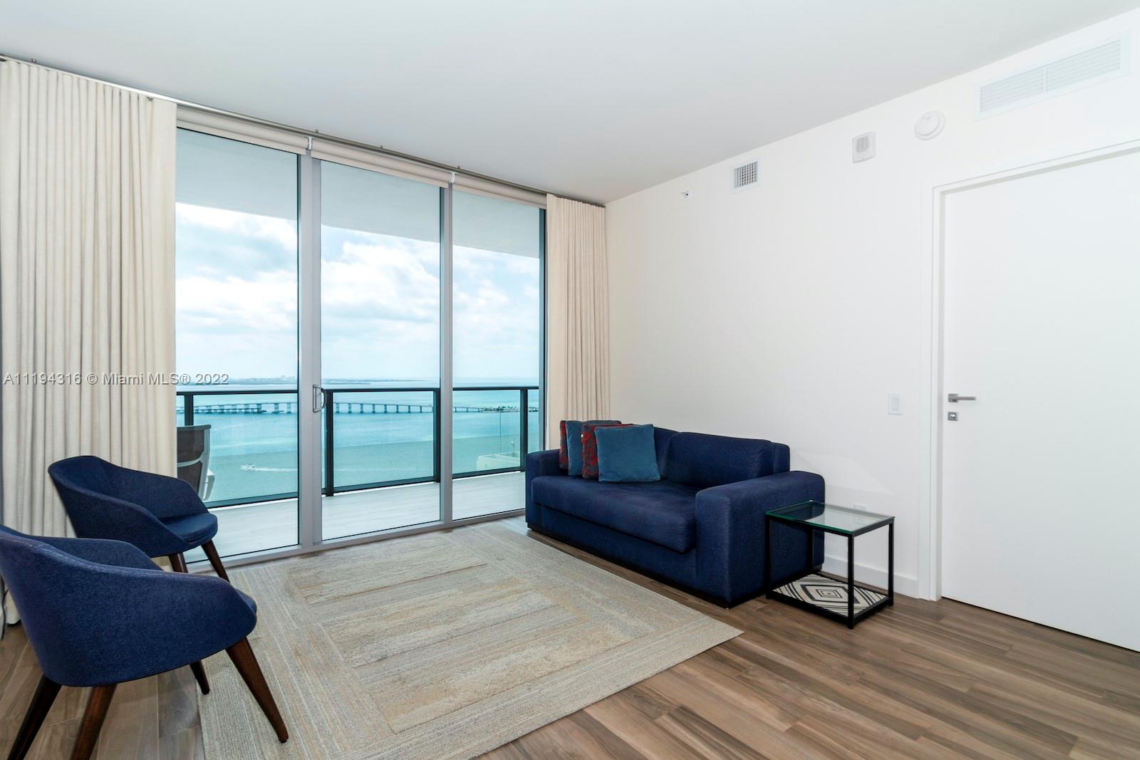 Hurry this amazing unit won't last! Wake up to the relaxing Biscayne Bay view! This High Floor 2 Bedroom + Den 2 Bathroom unit is fully furnished and has full build-out closets. The building has a rooftop pool, exercise room, movie theater, kids room, BBQ Area, etc. Amazing investment opportunity.