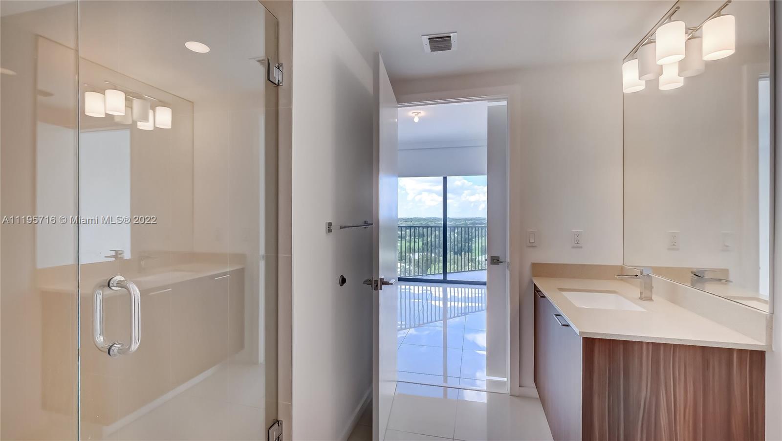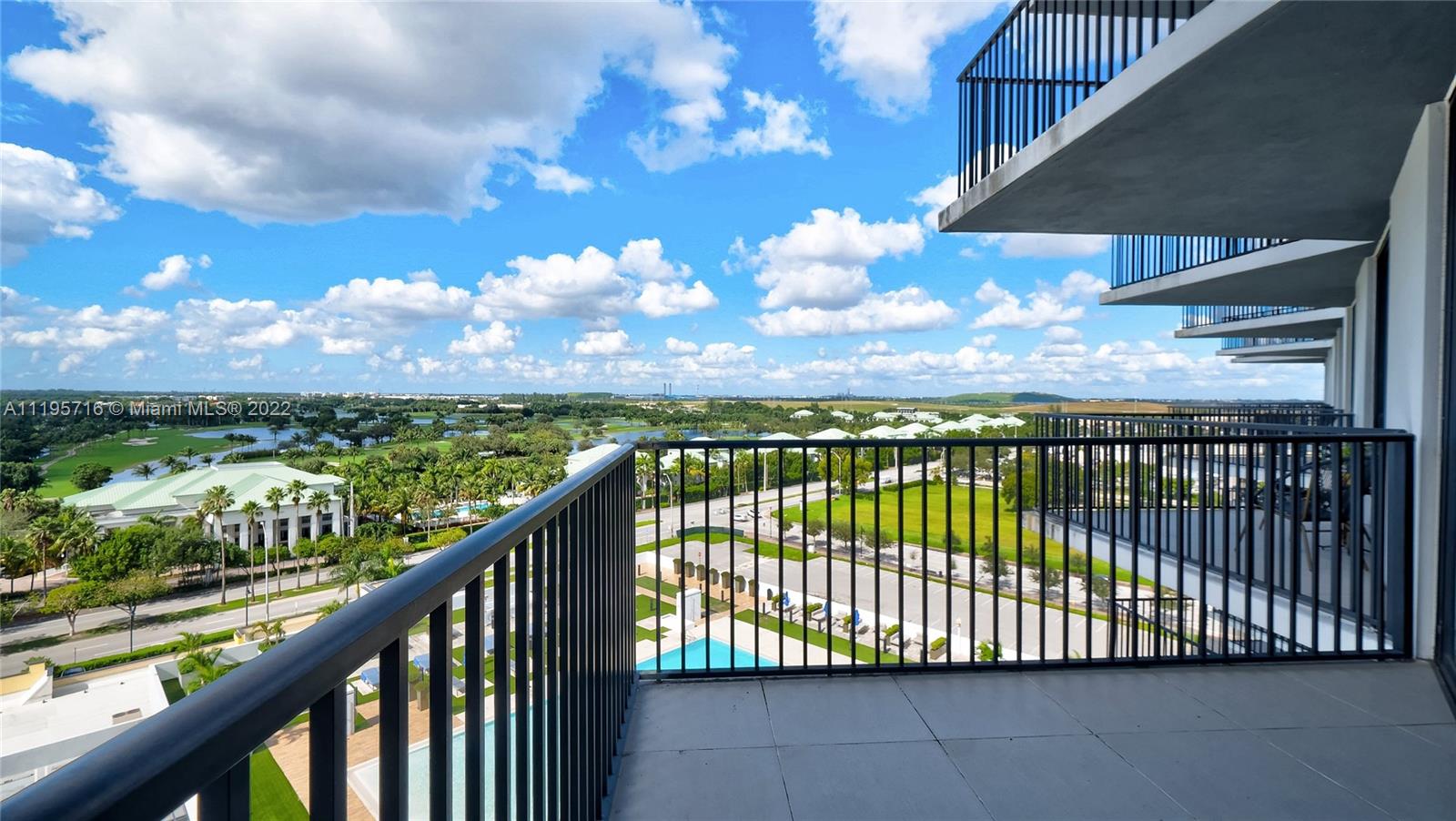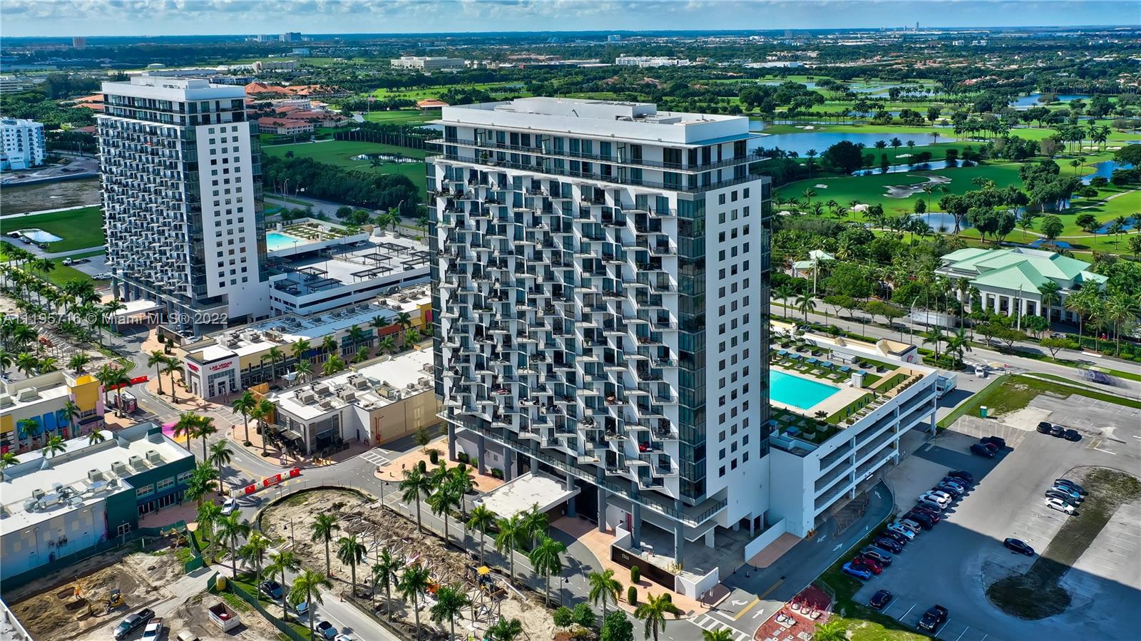 Luxury Downtown Doral living! Shops & restaurants at your doorstep. Lobby attended building with valet parking, complete exercise room with spinning room & sauna, resort style pool & deck. Unit features one bed & one bath plus den, high ceilings, stainless steel appliances with quartz counters in kitchen, walk in closet with built-ins, & amazing views of the golf course and pool. One assigned parking space, washer & dryer in unit, & additional storage unit.
