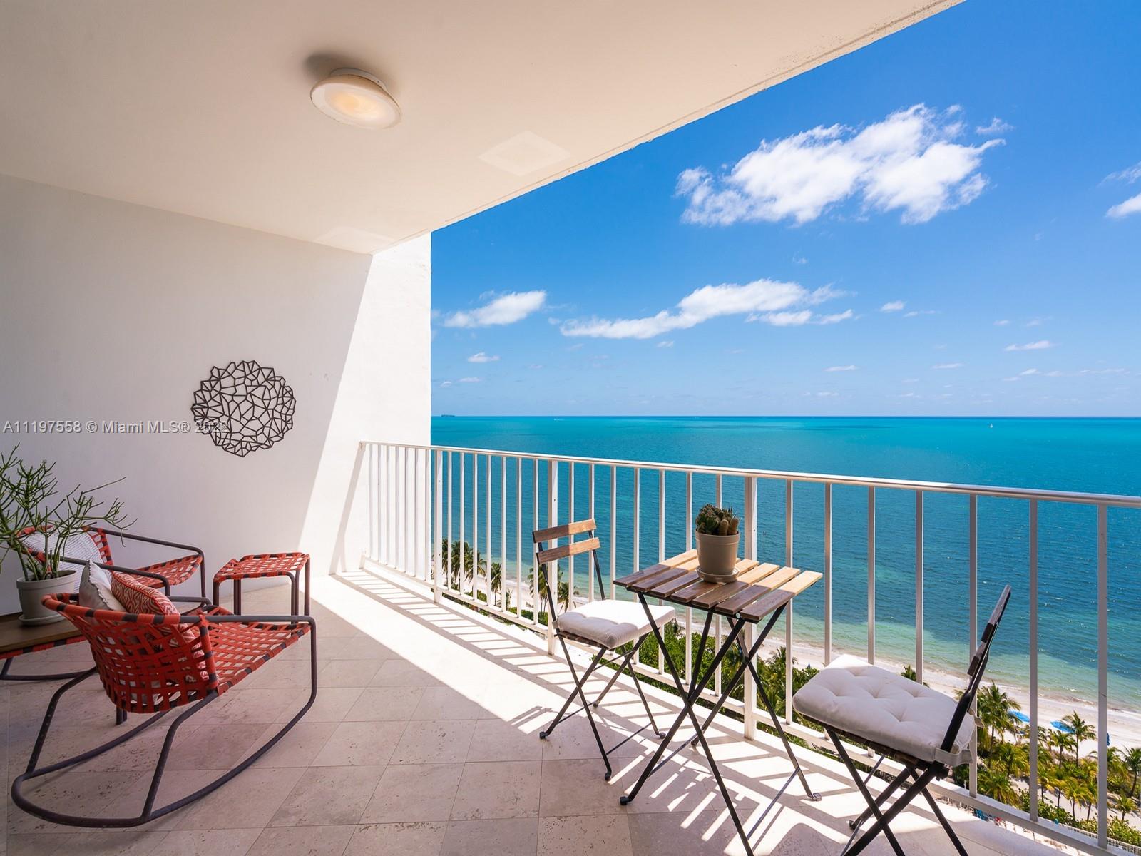 Enjoy sunrises and sunsets from this impeccably remodeled floor-through unit at Casa del Mar with unobstructed ocean and bay views. This unit features marble floors, Eggersmann gourmet kitchen with wooden cabinets, quartzite countertops, Liebherr refrigerator, Miele appliances, marble bathrooms, impact glass windows and doors and a private foyer. Casa del Mar is a full-service building with direct ocean access, oceanfront pool, lighted clay tennis courts, fitness center, sauna, basketball court, kids' room, library, party room and 24-hour concierge. Enjoy the Key Biscayne lifestyle and walk or bike to restaurants, shops, schools & parks.