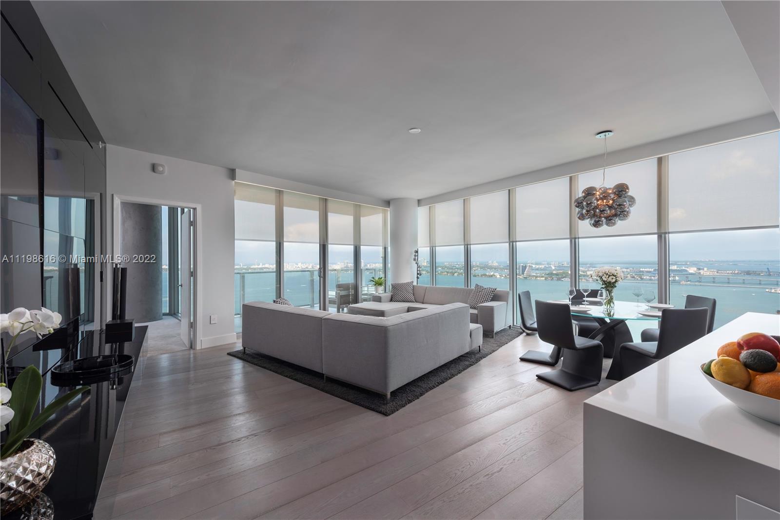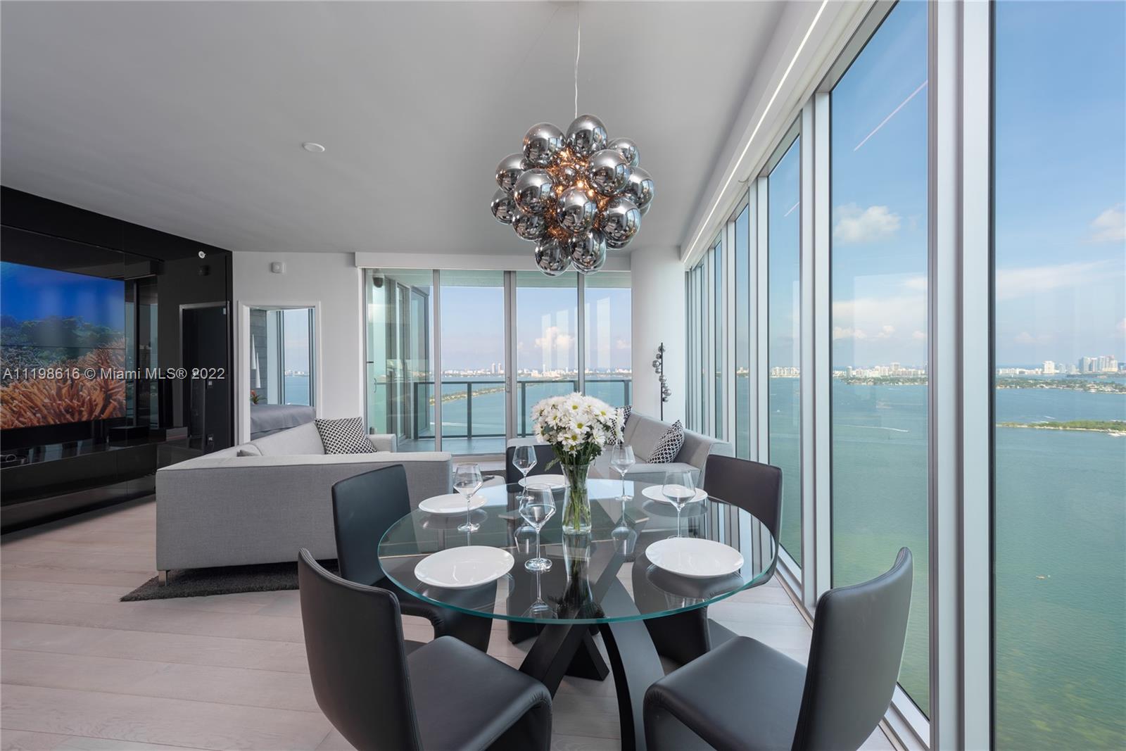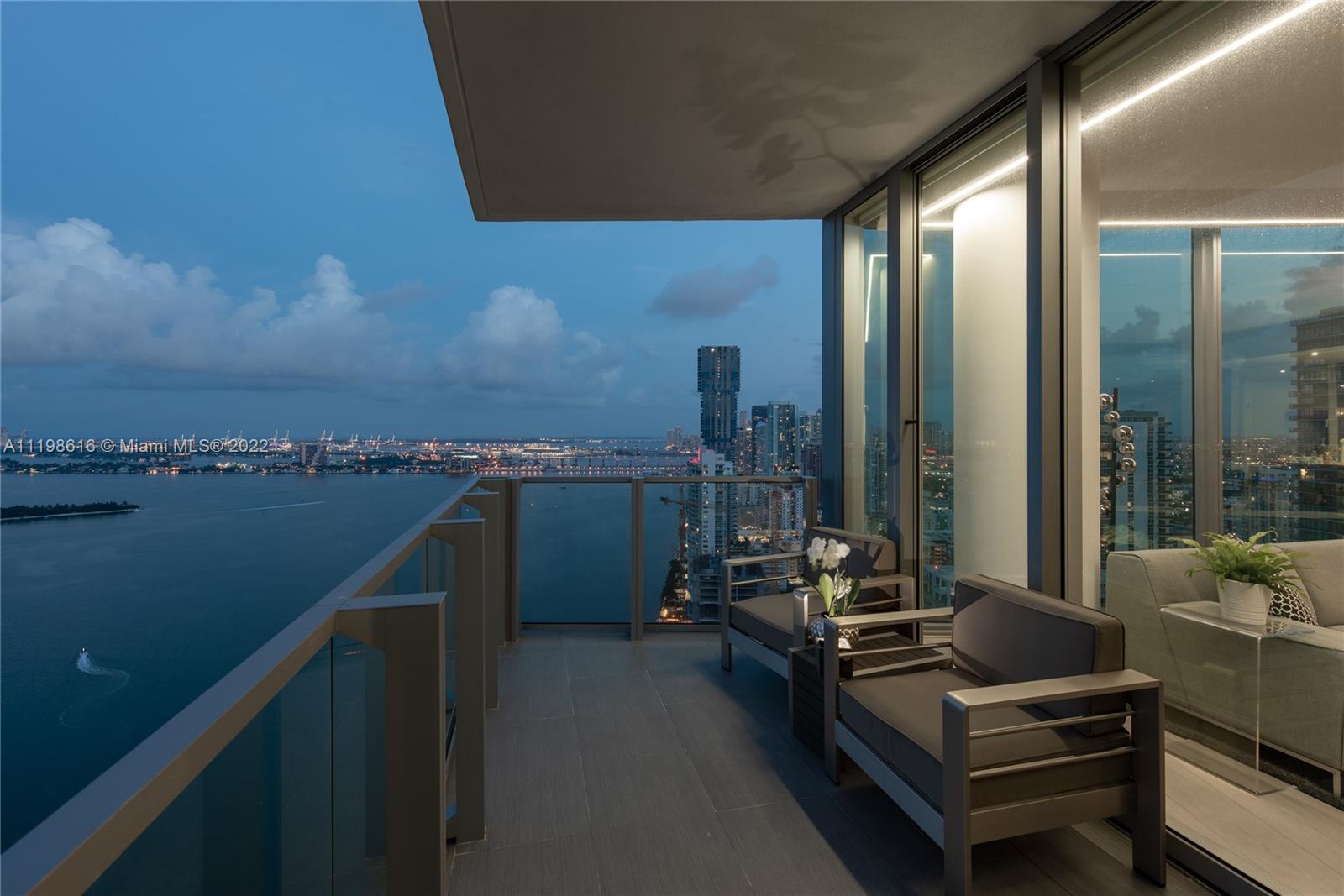 Best Floorplan at Biscayne Beach! 3 bed +den & 4 bath sky residence w/natural light from Sunrise to Sunset & panoramas of Biscayne Bay, Miami Beach & Downtown skylines. Decorated by Bart Emerson Lee Interiors w/many quality details, upgrades & custom European furniture. Real wood floors, LeGrand outlets & switches, wallpapers & specialty soffits w/built in LED lighting, motorized shades & blackouts. Extraordinary black glass video wall, built in speakers, smart home technologies, Sonos system, & more! Custom closets, xtra mirrors in baths, Snaidero kitchen & bath cabinetry, Miele appliances & quartz counters. Resort amenities, fitness & spa, 2 pools & jacuzzi, dog park, beach volleyball, 2 tennis, basketball, 24/7 front desk/security +private elevator foyer. Turnkey, furnished & perfect.