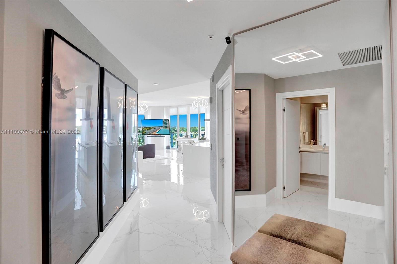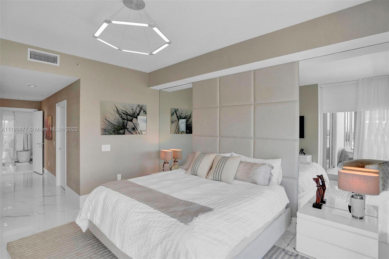 Rare opportunity to own this gorgeous, fully upgraded and professionally furnished 3 bedroom, 3.5 bath corner apartment with 10ft ceilings! . Beautifully and tastefully designed by famous designer Steven G, with premium Bosch appliances and finishes. Italian doors through out! This apartment equipped with Finger prints door lock and security cameras. The unit is ideally located overlooking the water and the pool. Enjoy the sunset each and every evening! Parque Towers is located in the heart of Sunny Isles Beach and this building has all the amenities you and your family will ever need!