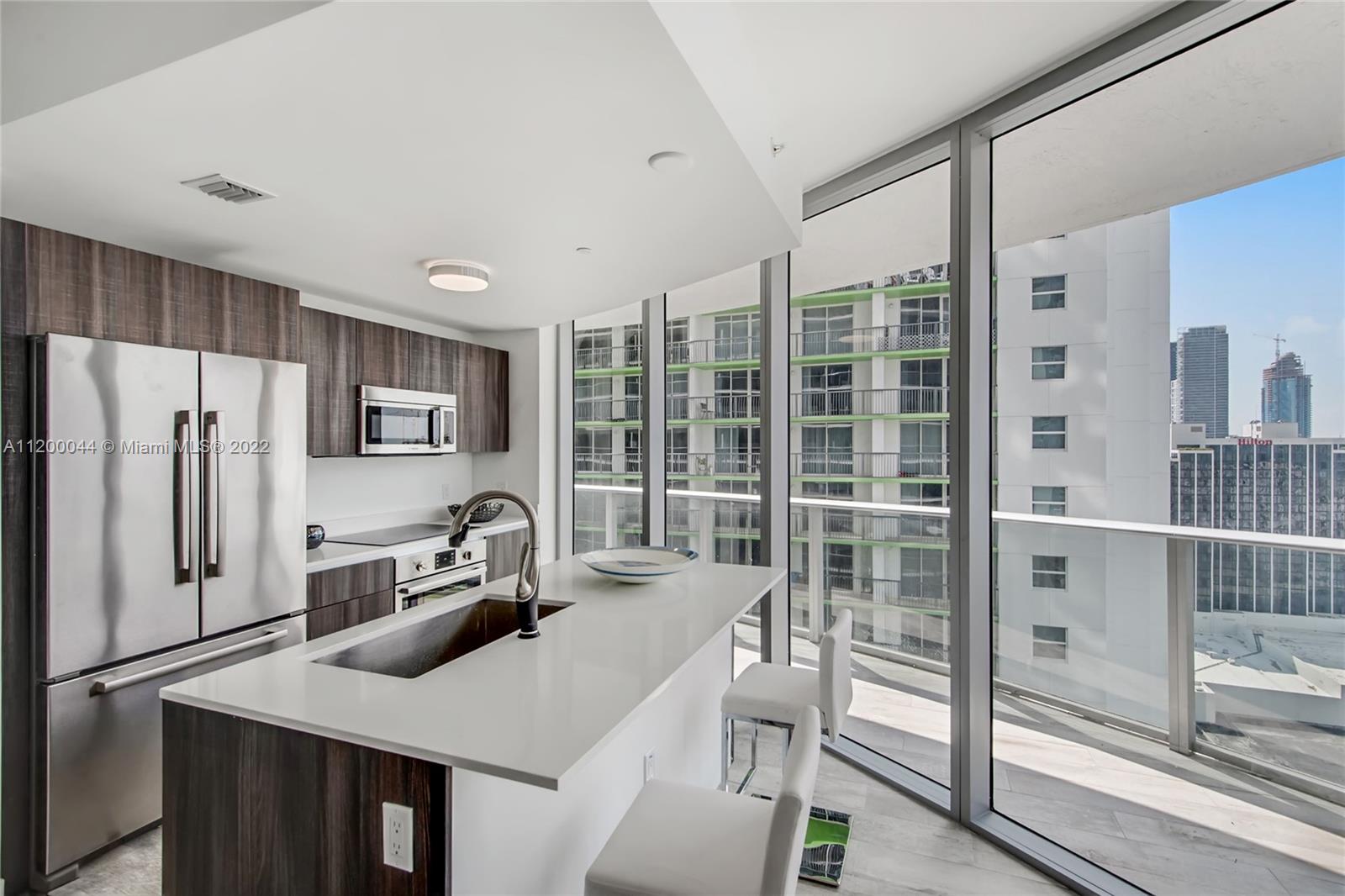 Watch the sunset on your west facing corner-unit at the luxurious Aria on the Bay. Spectacular views of downtown Miami, floor to ceiling impact windows and an oversized wrap-around balcony. Upgraded: light wood plank porcelain tile floors, high-end closets, glass panels in baths, white vinyl Italian doors. Open chef’s kitchen equipped with Italian cabinetry and Bosch appliances. Luxury resort lifestyle elevated by Arquitectonica’s flawless design and 3 floors of amenities including: 2 pools (sunrise & sunset), gym, yoga studio, sauna, Kids room, theater room, social room,, game room, spa, lounge, conference rooms, and much more.. Steps away from the Arts & Entertainment District, minutes from Midtown and centers of Downtown+Brickell. 24/7 valet parking and security on site.