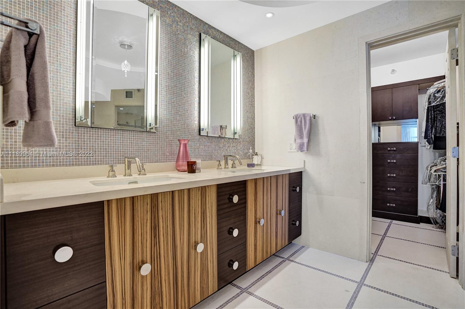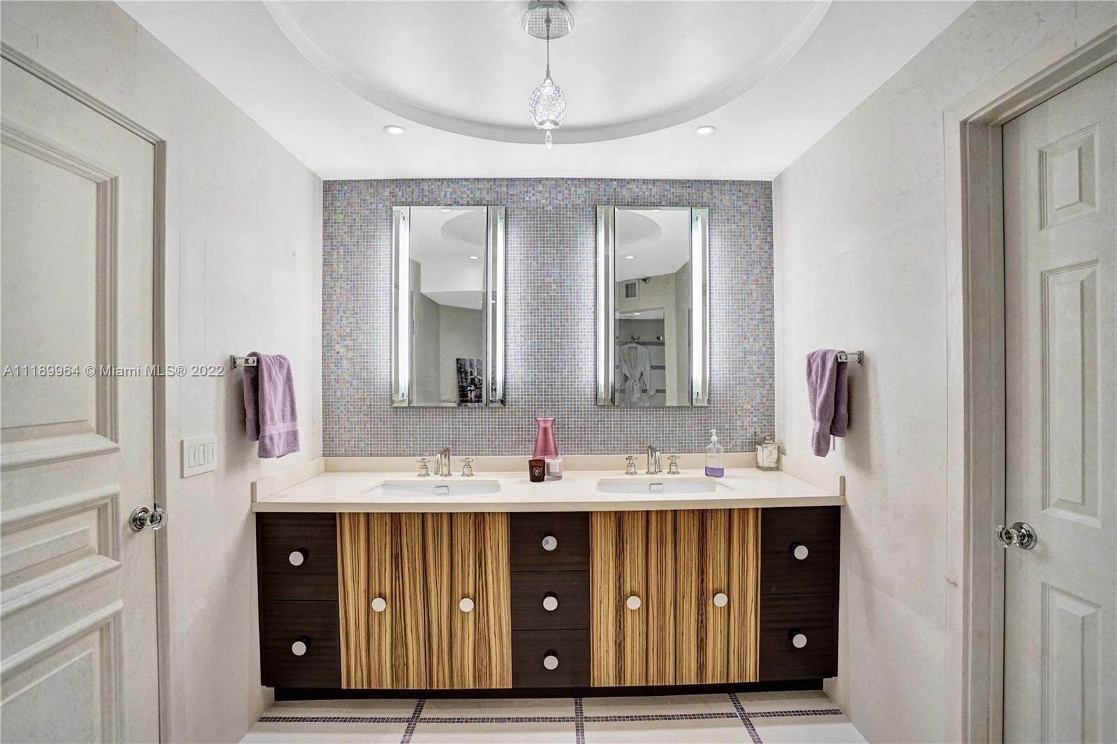 Beyond spectacular, fully renovated by Architect/Designer. Immaculate custom unit for the most discriminating buyer who aims for perfection in high demand SE Florida. Unobstructed SE & N views. Top of the line finishes from ceilings, walls, lighting, floors & artistic designer niches. Brazilian cherry wood floors. Sub-Zero combo refrigerator/wine cooler, Italian custom cabinets, Wolf warming drawer, double ovens, microwave, 2 add’l wine refrigerators, Granite waterfall counter; stainless steel counter w/integrated sink. Master bath limestone w/Sicis custom design tile, 2 lg xl deep Robern 23x40 w/8” depth, plenty of storage. 2nd bath: Sicis tile w/stone. Miele SS washer, dryer. Too many to mention. No detail has been spared. Enjoy the marina, tennis & all Mystic Pointe Island has to offer.