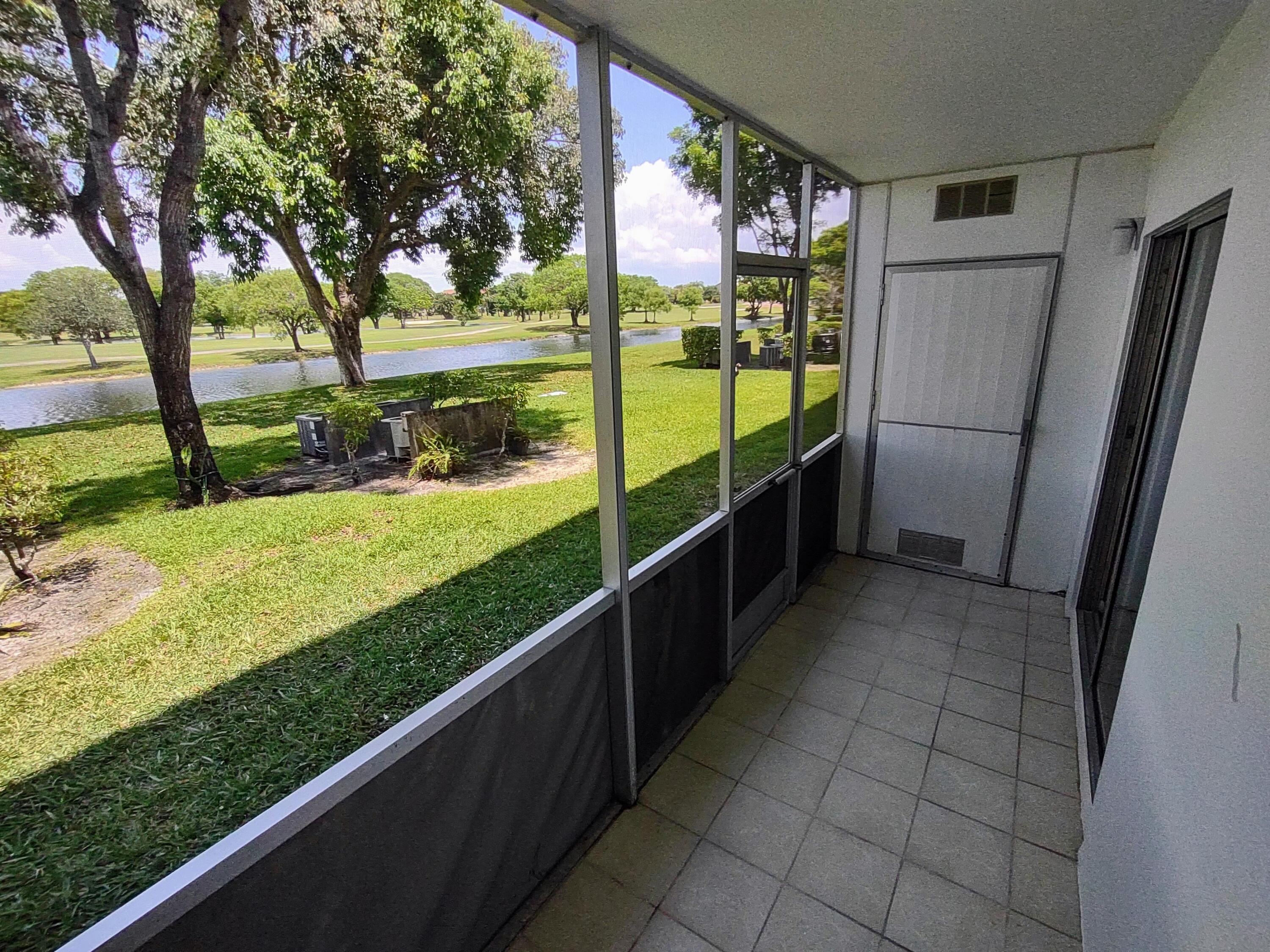 MOVE-IN READY, RENOVATED, 1ST FLOOR CONDO located in the sought after Gated Community of Century Village, an Active 55+ Community. NEW A/C 2022. Spacious floorplan featuring a beautifully updated NEW White Modern Kitchen with granite countertops, all NEW APPLIANCES, all NEW LIGHT FIXTURES, NEW Window Treatments, Freshly Painted Interior, and NEW Baths, and New Vinyl Flooring in Owner's Suite. NO CARPET!!! Step outside onto your covered and screened-in lanai to enjoy beautiful views of the lake and golf course. Community laundry steps away from unit.Community offers clubhouse, theater, outdoor activities, gym, pools, tennis, golf, and more. On-site convenience store, medical offices, management office, etc. 24-Hour Security.Association includes Water, Cable, & Internet.
