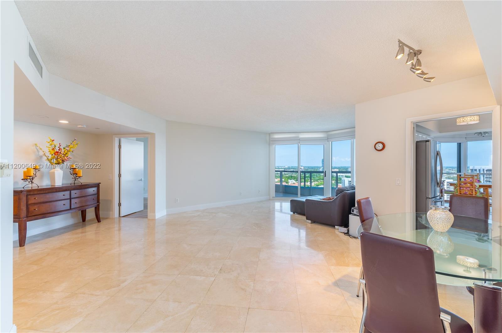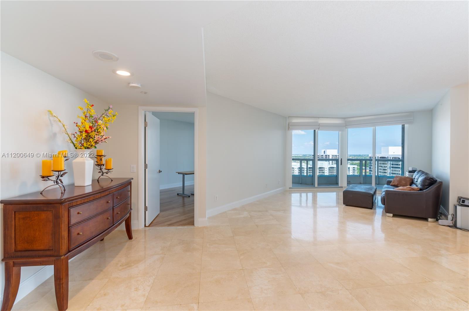 Best line in the South Tower at THE POINT. Travertine marble throughout the family room of this beautiful 3 Bed + Den. This expansive home boasts 1,872 square feet with two breathtaking balconies facing both the east (bedroom views of the Atlantic Ocean) and the west (beautiful sunsets from your living room). The association offers 5 Star amenities, including a heated salt water pool within the 3 located around the property. An incredible Gym, a spa, and an Onsite Café is offered through the condominium. Talk about living in paradise?